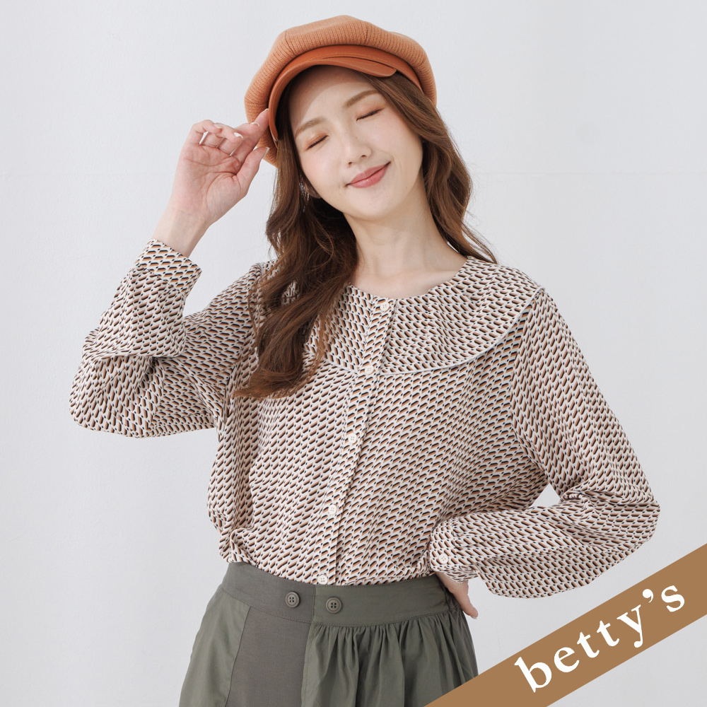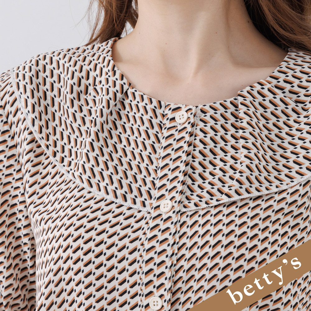 betty’s貝蒂思(25)幾何壓摺大翻領雪紡襯衫(米白色)米白色,M|米白色,L|米白色,XLShirts & Blousesbetty’s貝蒂思