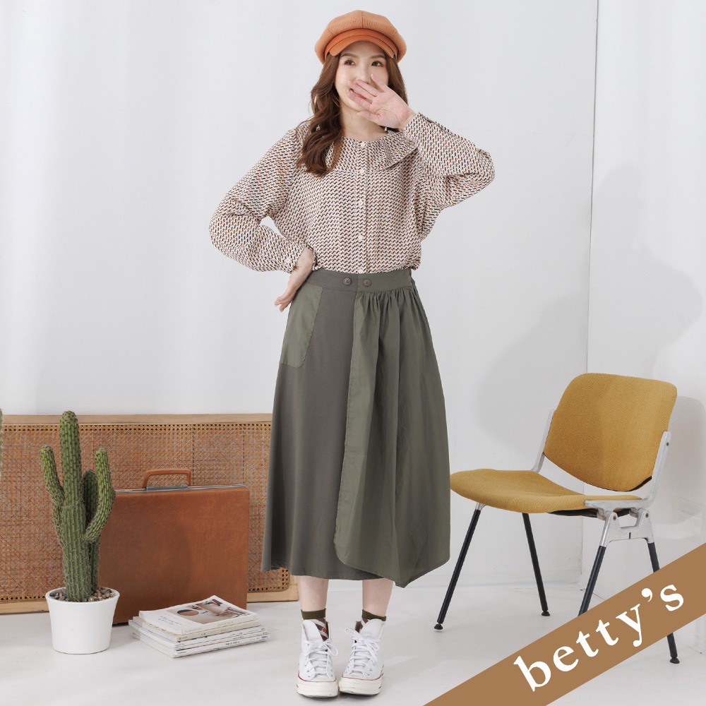 betty’s貝蒂思(15)圓領拼接百褶造型上衣(白色)白色,M|白色,LT-shirtsbetty’s貝蒂思