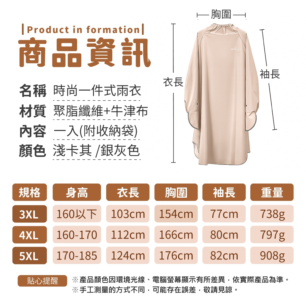 一件式雨衣 時尚雨衣 附收納袋 雨衣 加大 一體式雨衣 加長遮腳 機車雨衣 連身雨衣 斗篷雨衣【小麥購物】【C618】淺卡其|3XL【身高150-160cm】|淺卡其|4XL【身高160-170cm】|淺卡其|5XL【身高170-185cm】|銀灰色|3XL【身高150-160cm】|銀灰色|4XL【身高160-170cm】|銀灰色|5XL【身高170-185cm】Rain Coats 小麥購物
