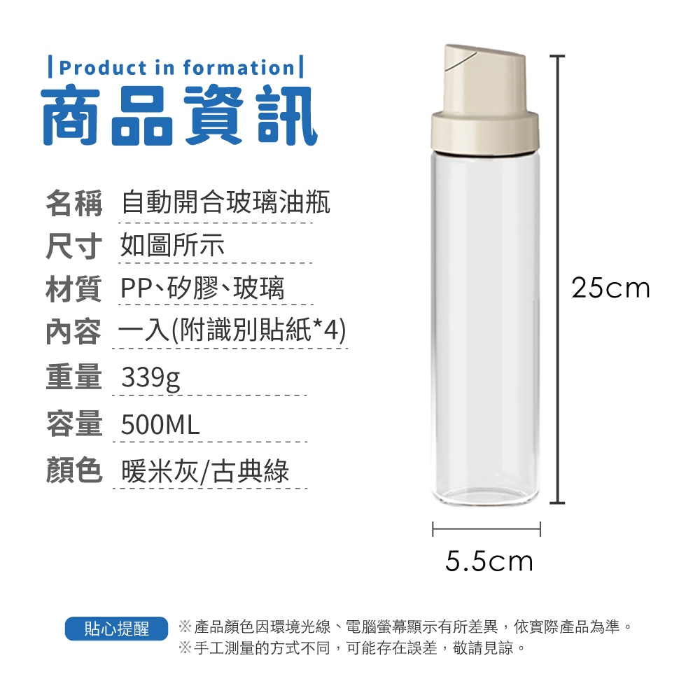 自動開合油瓶 玻璃油瓶 油醋壺 調味瓶 調味罐 自動開合油壺 油罐 醬油瓶 醬油罐 油醋瓶【小麥購物】【G603】暖米灰Food Storage 小麥購物