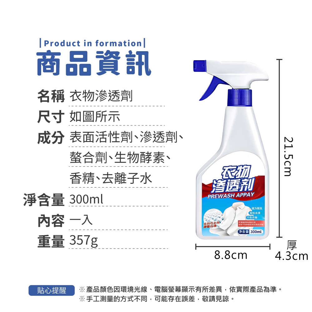 衣物滲透劑 300ml 衣服清潔 衣物去汙 清潔 去漬 去汙漬 衣服污漬 汙漬清潔 去汙 去油【小麥購物】【G860】300ml+噴頭Laundry Care 小麥購物