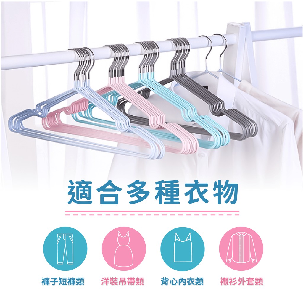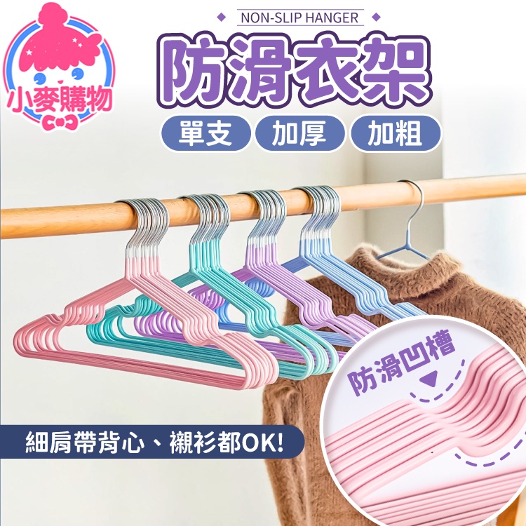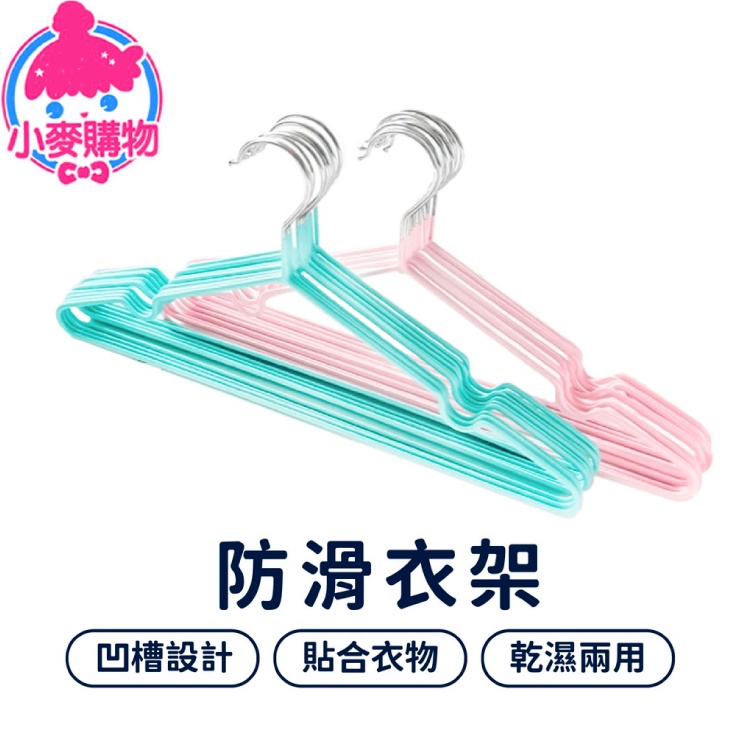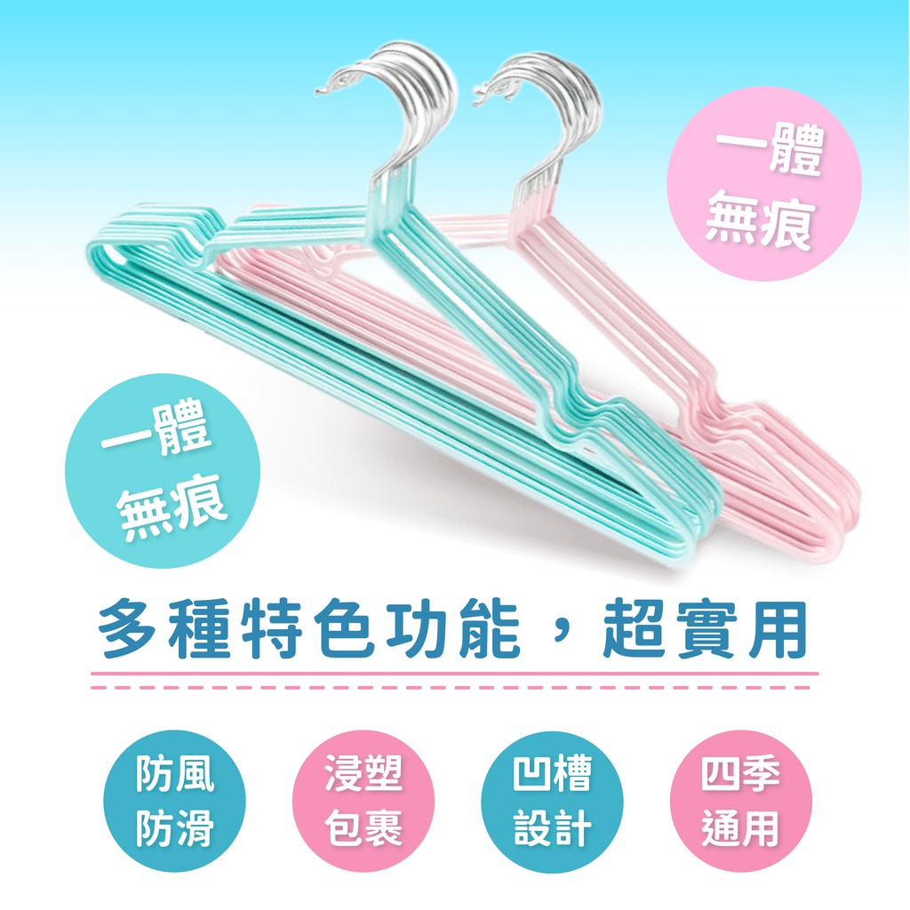 高品質 防滑衣架 衣架 不鏽鋼衣架 曬衣架 止滑衣架 吊衣架 內衣架 曬衣服 晾曬架 浸塑衣架 【小麥購物】【C076】單支售 顏色隨機|超商限購80支|帶勾款|天青藍|帶勾款|櫻花粉Hangers & Pegs 小麥購物