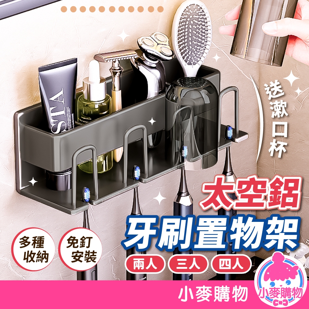 太空鋁牙刷置物架 牙刷架 置物架 收納 居家 收納架 免打孔 多功能牙刷架 自動擠牙膏器 【小麥購物】【B090】擠牙膏器|灰|擠牙膏器|黑|兩人款|灰|兩人款|黑|三人款|灰|三人款|黑|四人款|灰|四人款|黑Toothbrush Holders & Toothpaste Dispensers 小麥購物