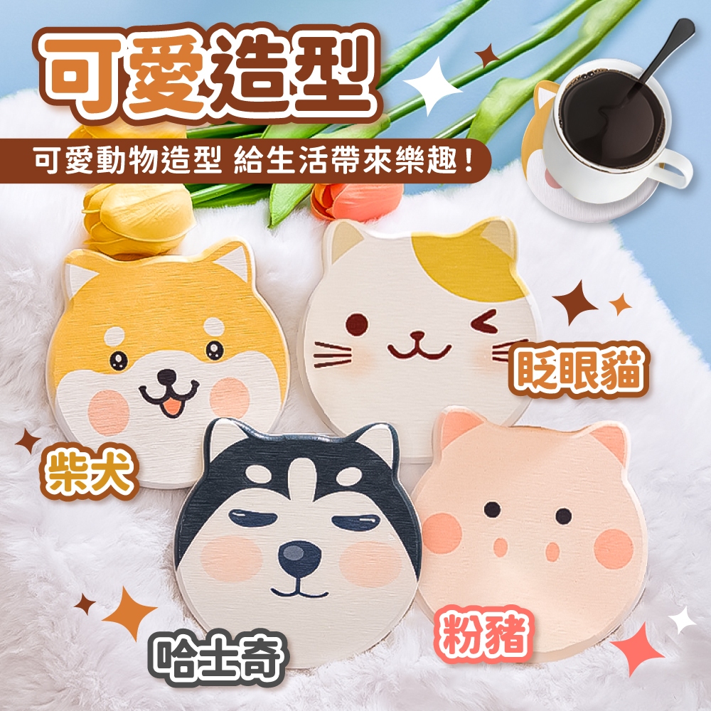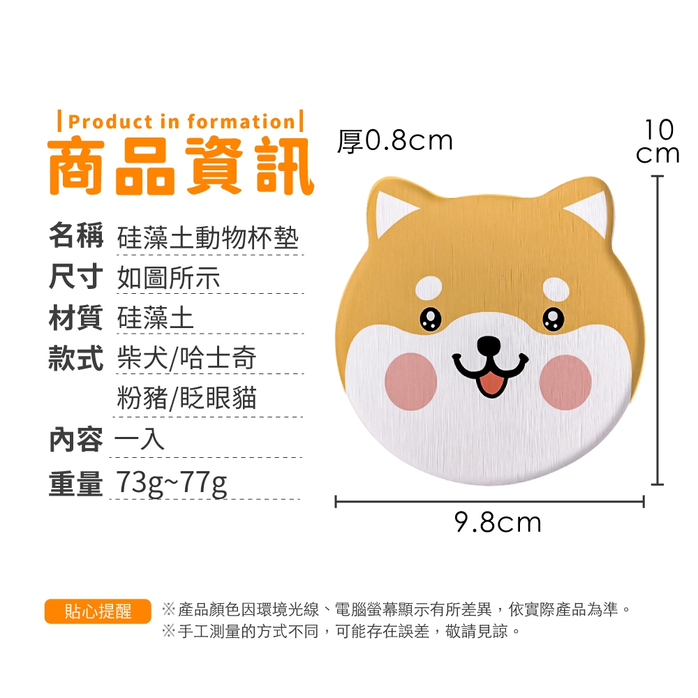 硅藻土動物杯墊 動物杯墊 硅藻土杯墊 吸水 隔熱杯墊 茶杯墊 咖啡杯墊 除濕吸水杯墊 硅藻土【小麥購物】【G807】柴犬|哈士奇|粉豬|眨眼貓Placemats & Coasters 小麥購物