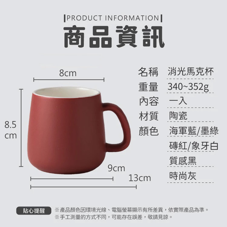 消光馬克杯 啞光馬克杯 茶杯 水杯 馬克杯 牛奶杯 咖啡杯 玻璃杯 杯具 果汁杯 北歐風 陶瓷【小麥購物】【C118】海軍藍|墨綠|磚紅|象牙白|質感黑|霧面藍Cups, Mugs & Glasses 小麥購物