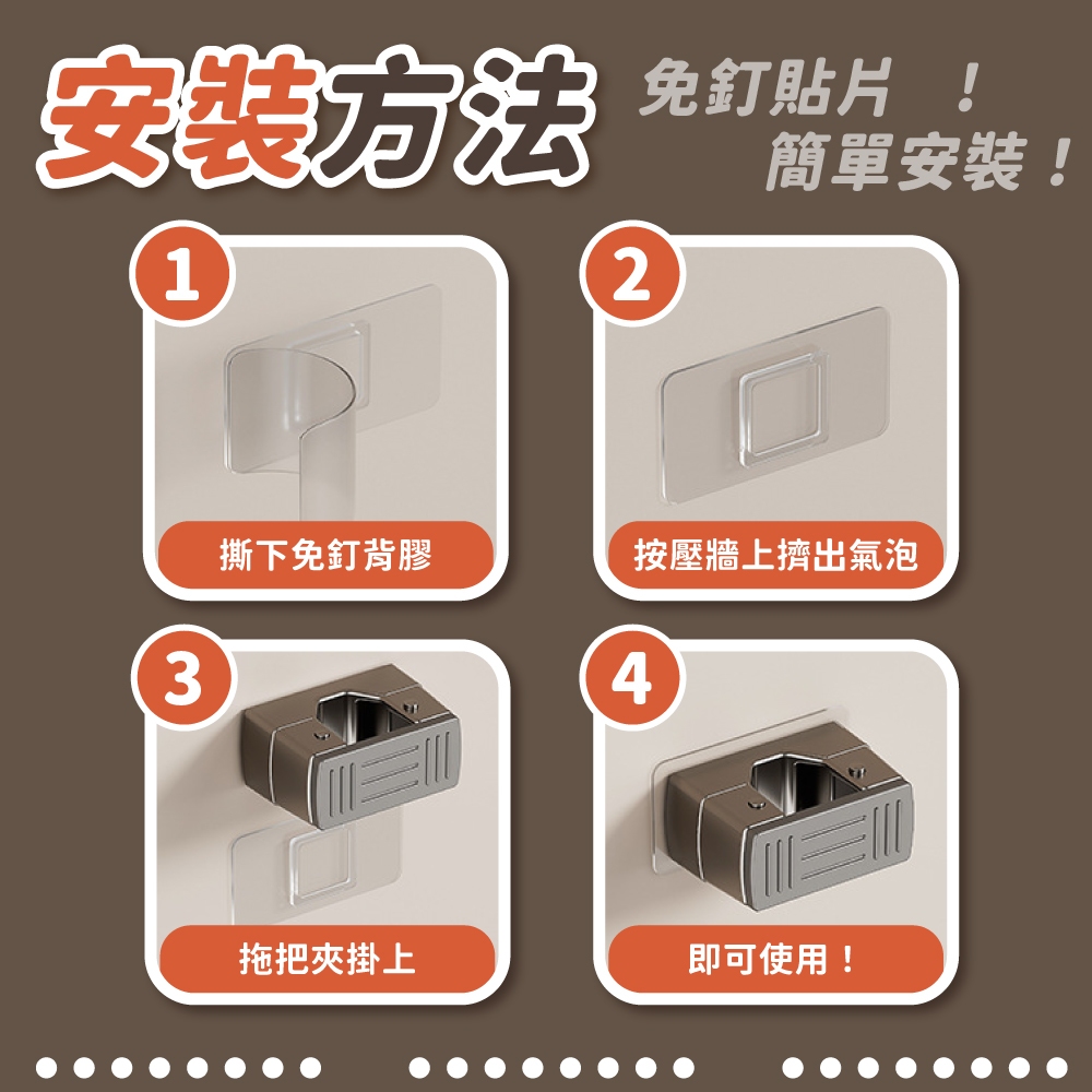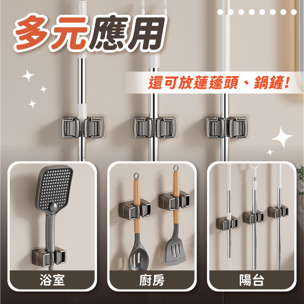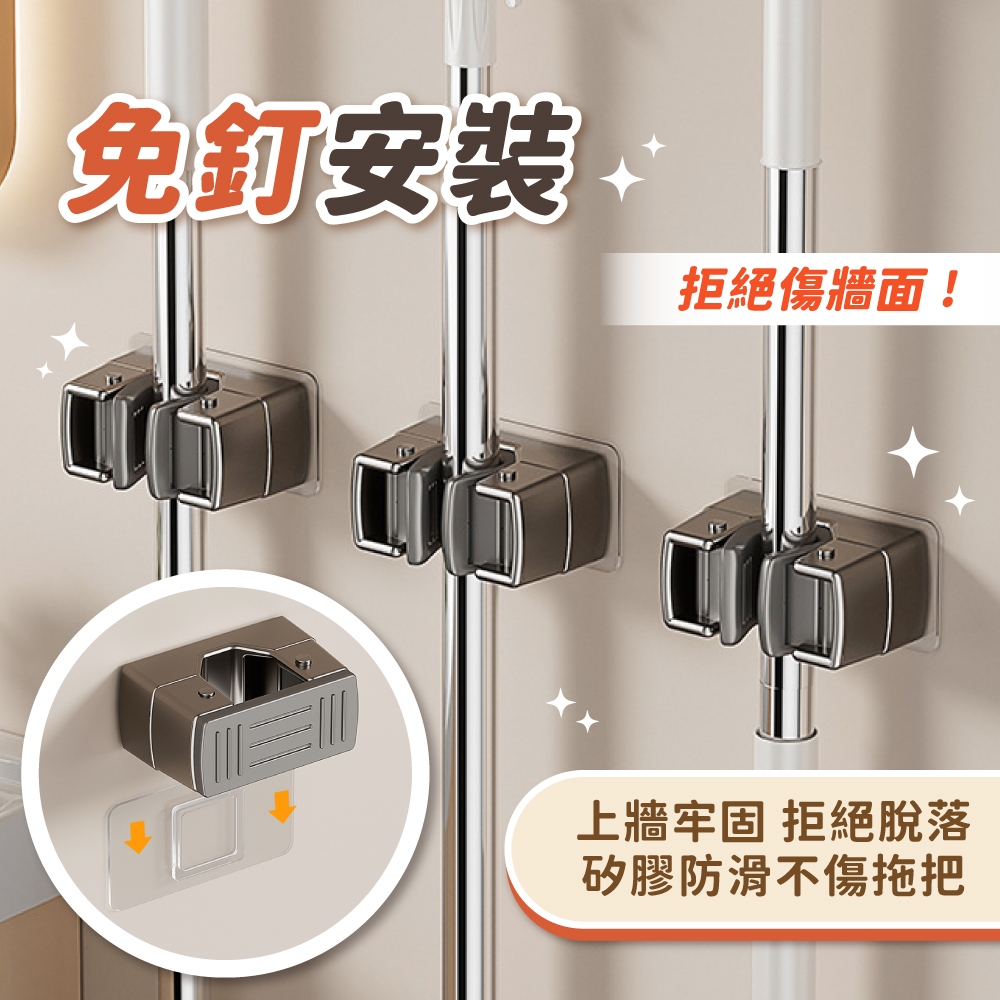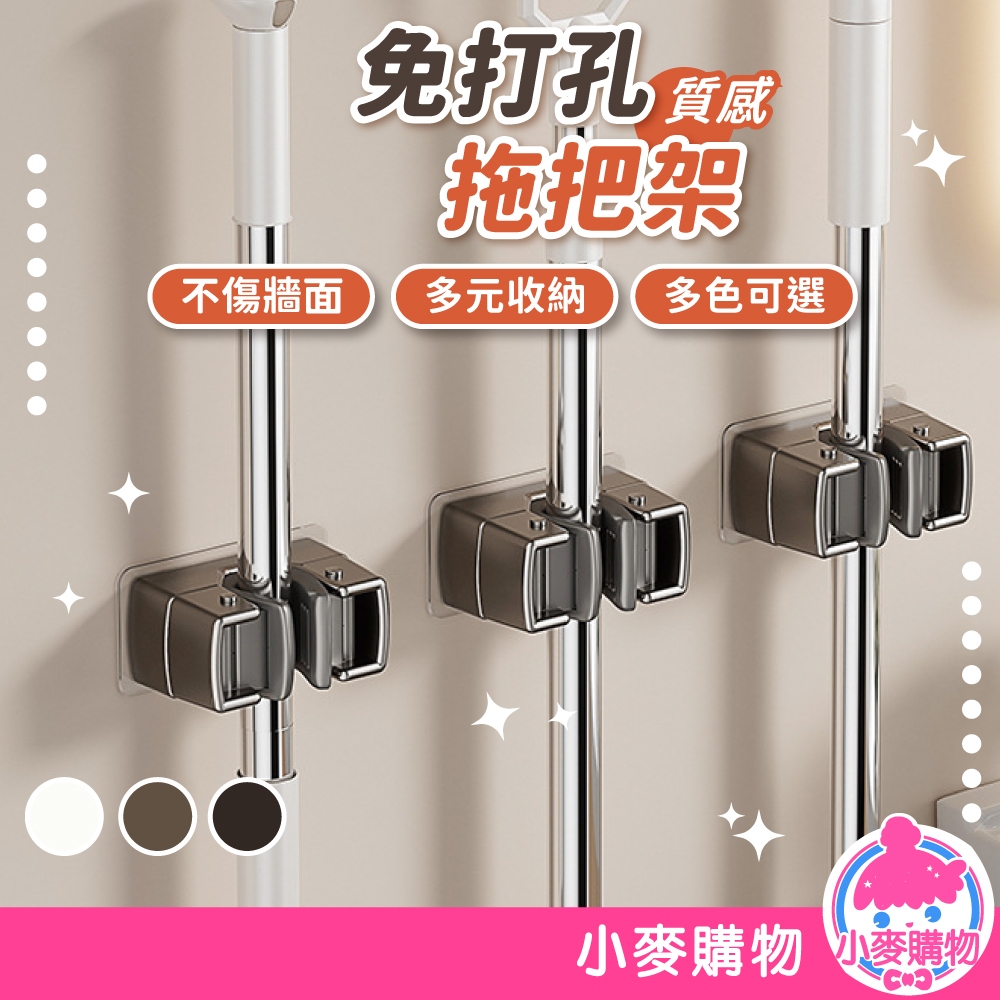 免打孔拖把架 拖把架 拖把夾 收納 居家 掃把夾 掃把架 免釘 免打孔 拖把收納架【小麥購物】【Y912】深灰|雅黑|米白Hooks 小麥購物