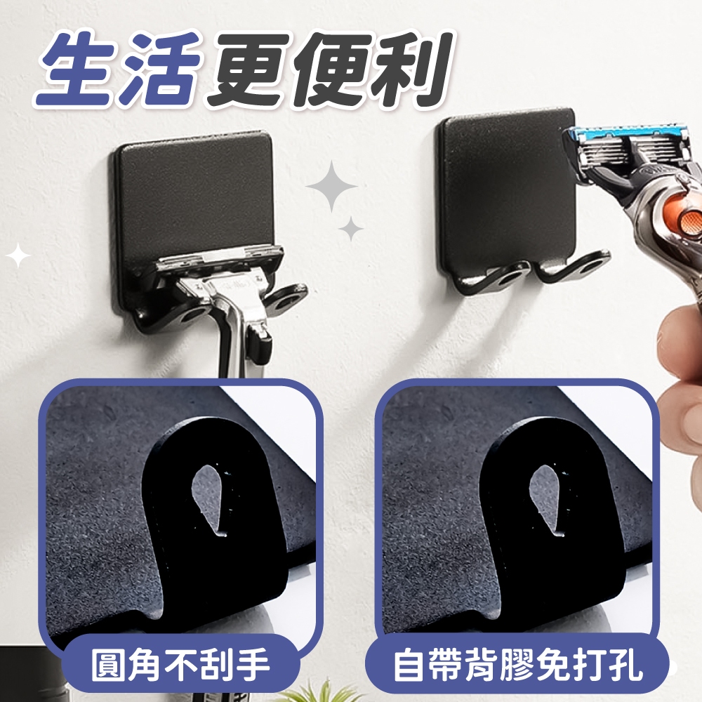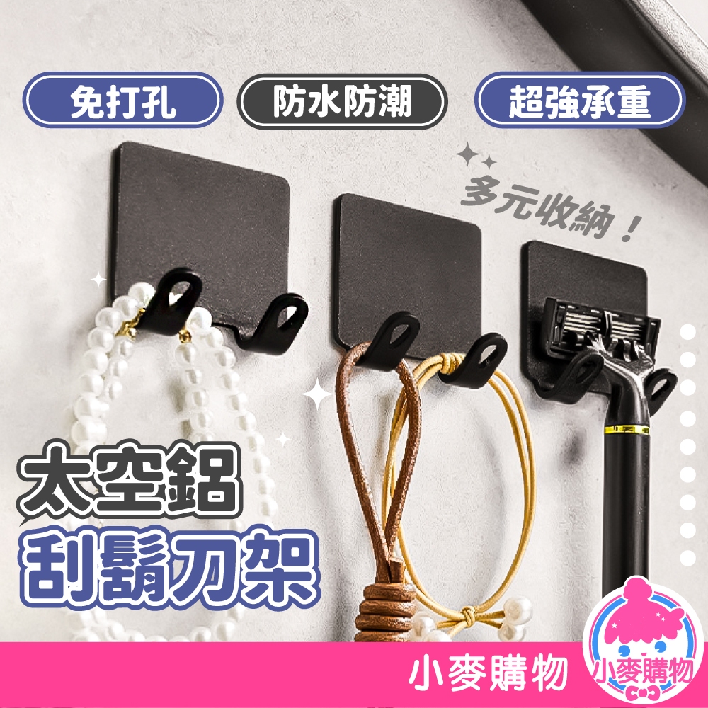 太空鋁刮鬍刀架 刮鬍刀置物架 門後掛勾 衣櫃掛勾 掛勾 刮鬍刀掛鉤 浴室壁掛 金屬掛鉤 免釘安裝【小麥購物】【Y897】雙鉤|黑 (免釘安裝)Hooks 小麥購物