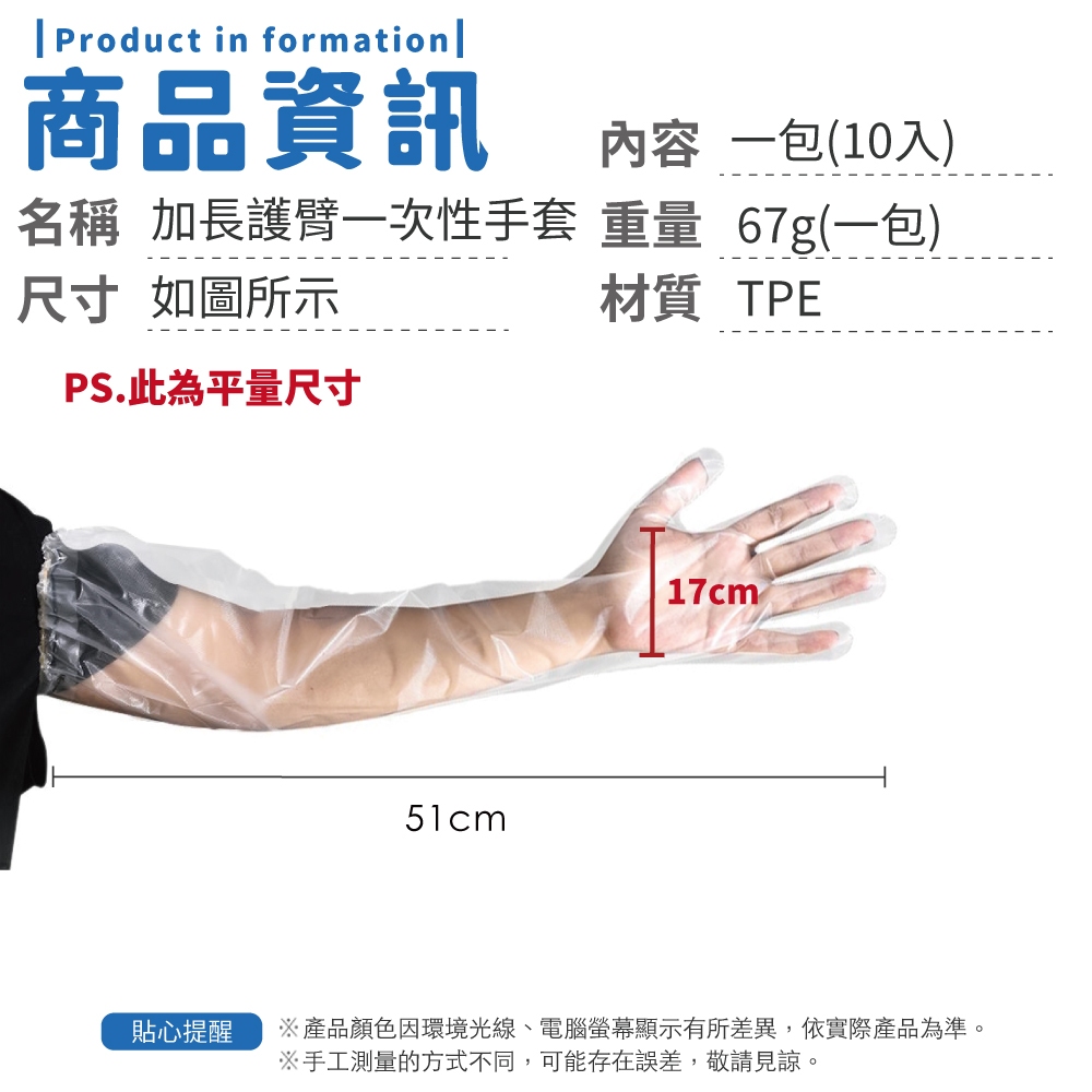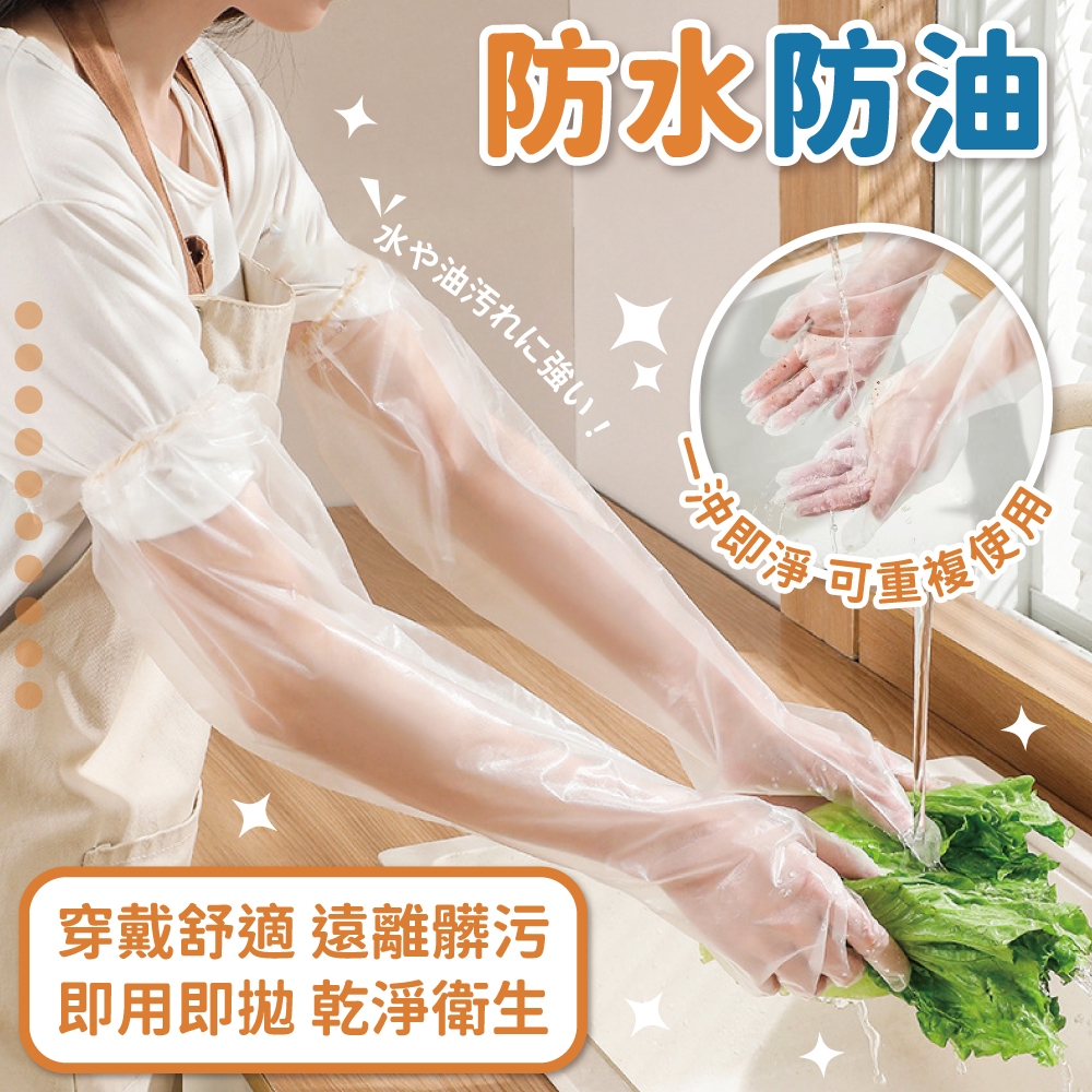 加長護臂一次性手套 一次性手套 10入 五雙 家務手套 束口防滑手套 廚房清潔手套 防水手套【小麥購物】【Y933】一包10隻入Aprons & Kitchen Gloves 小麥購物