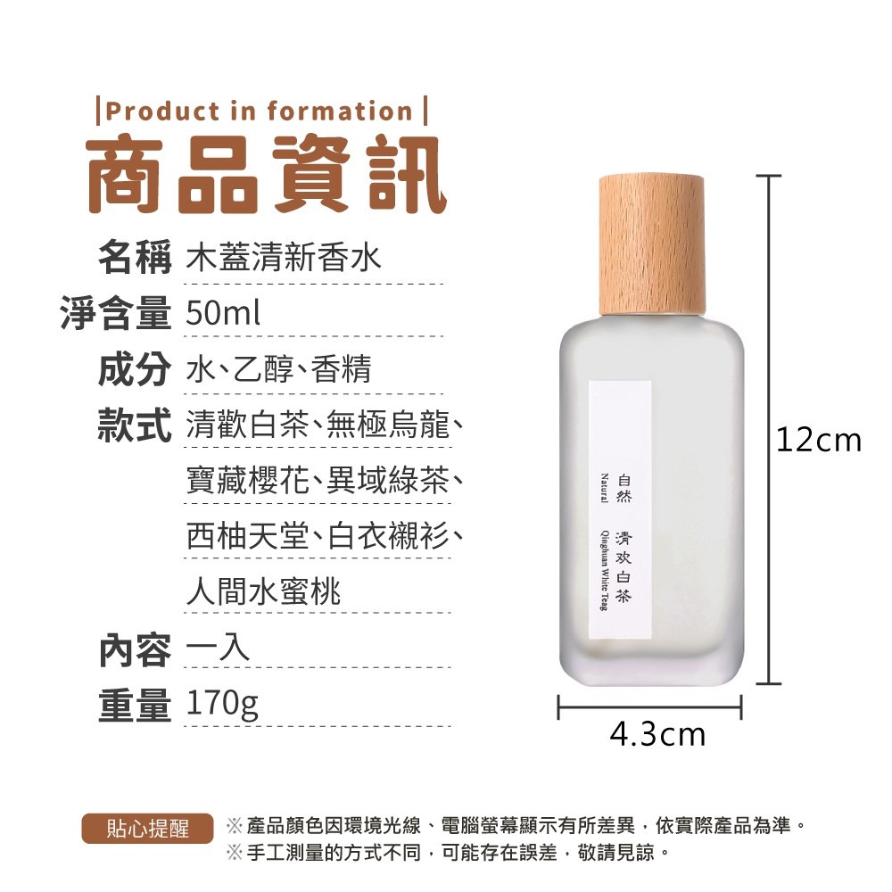木蓋清新香水 50ml 香水 淡香水 七種香型 香氛 花香 茶香 果香 清新 淡香 木蓋香水【小麥購物】【S308】清歡白茶|無極烏龍|寶藏櫻花|白衣襯衫|人間水蜜桃 小麥購物