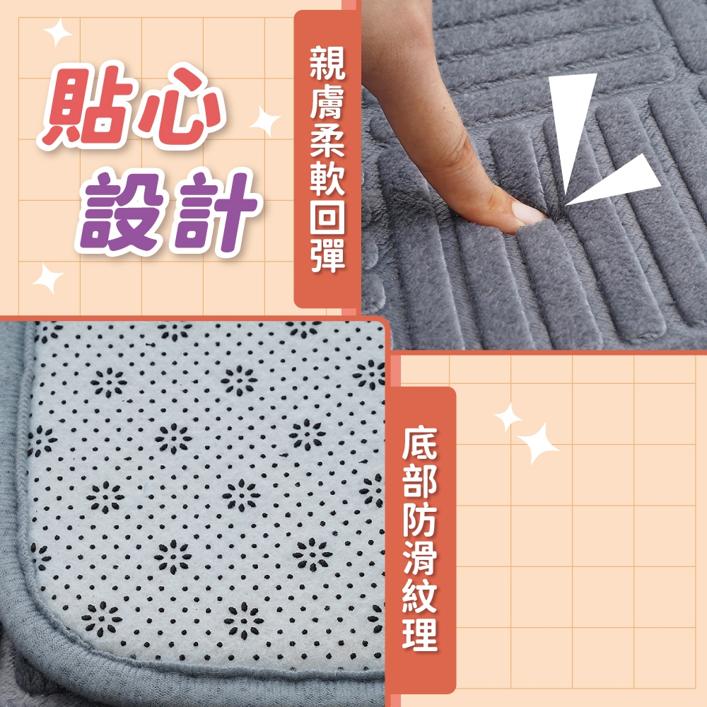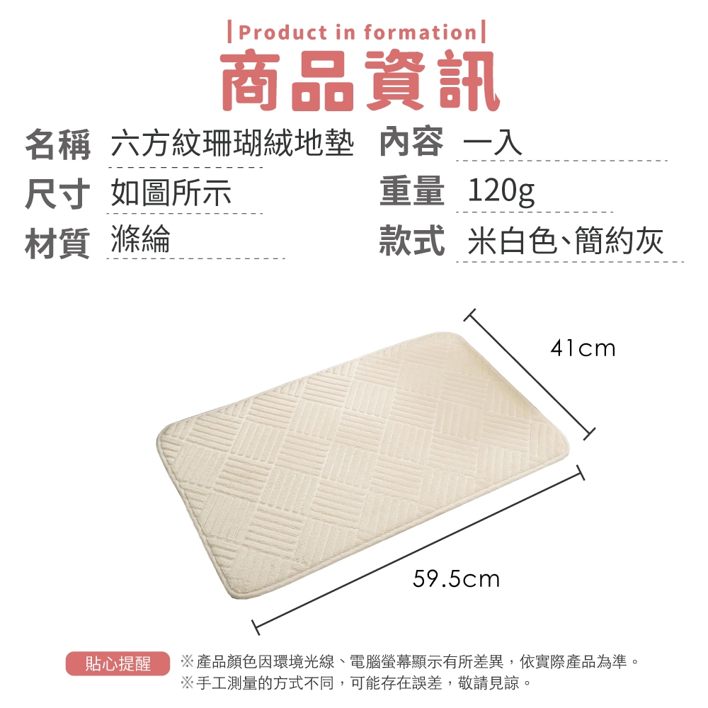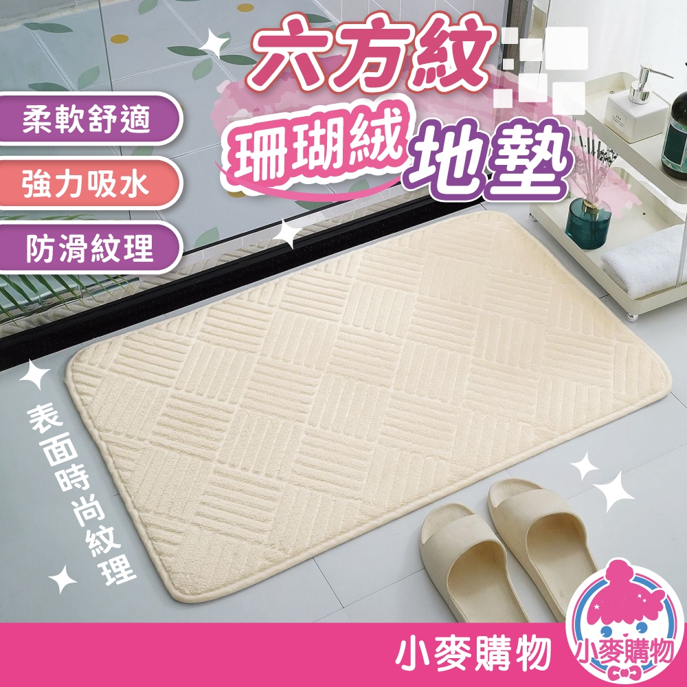 六方紋珊瑚絨地墊 地墊 地毯 吸水地墊 腳踏墊 門口墊 腳墊 浴室地毯 廁所地墊 廚房地墊【小麥購物】【C650】米白色|簡約灰Floor Mats 小麥購物