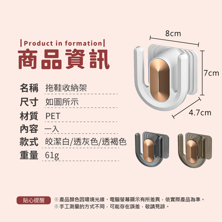 拖鞋收納架 壁掛式鞋架 U型鞋架 置物架 收納架 免釘 鞋架 鞋插架 掛勾 掛架 浴室收納 拖鞋【小麥購物】【Y881】透灰色|皎潔白|簡約白|基礎款Hooks 小麥購物