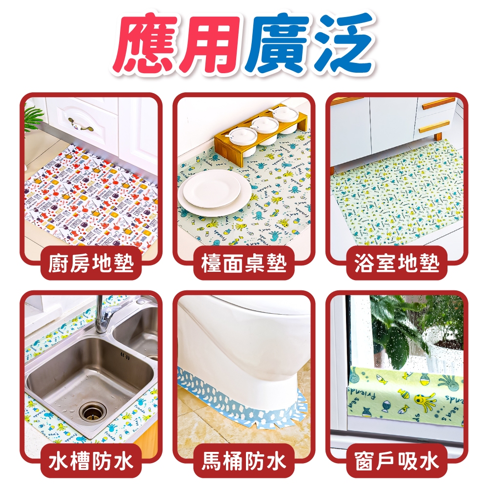 自黏式吸濕防滑墊 吸濕防滑地墊 吸水貼 地墊 廚房地墊 吸水地墊 桌墊 防滑地墊 止滑墊 踏墊【小麥購物】【C362】幸運四葉草|白雲|下午茶時光|海底世界|彩色小馬Floor Mats 小麥購物