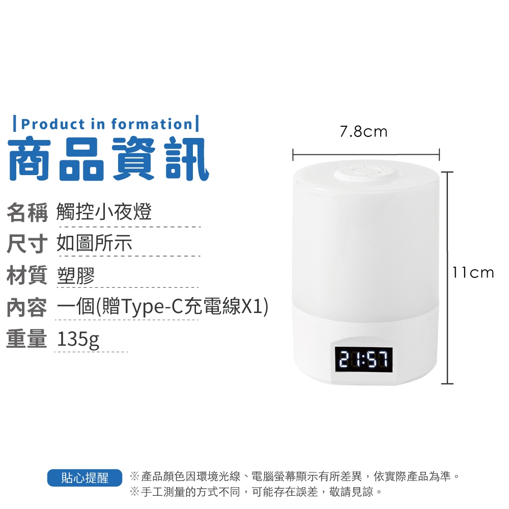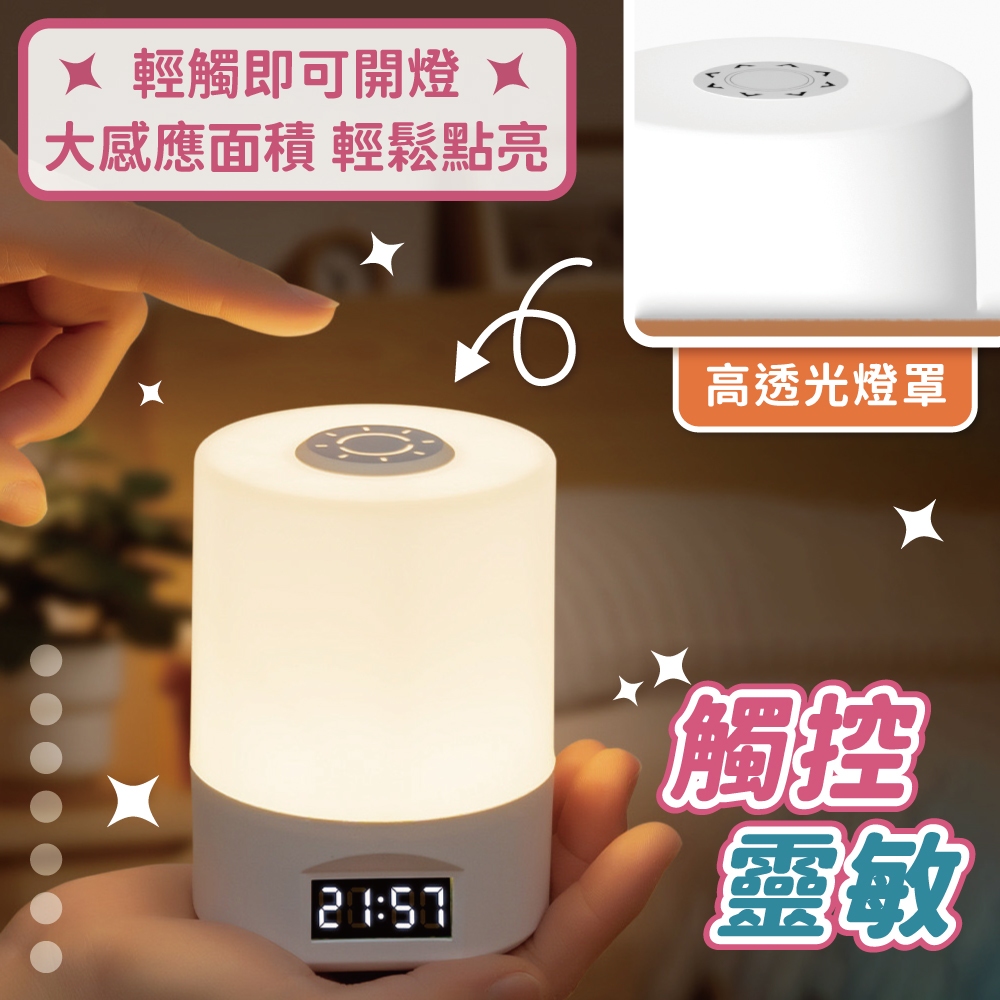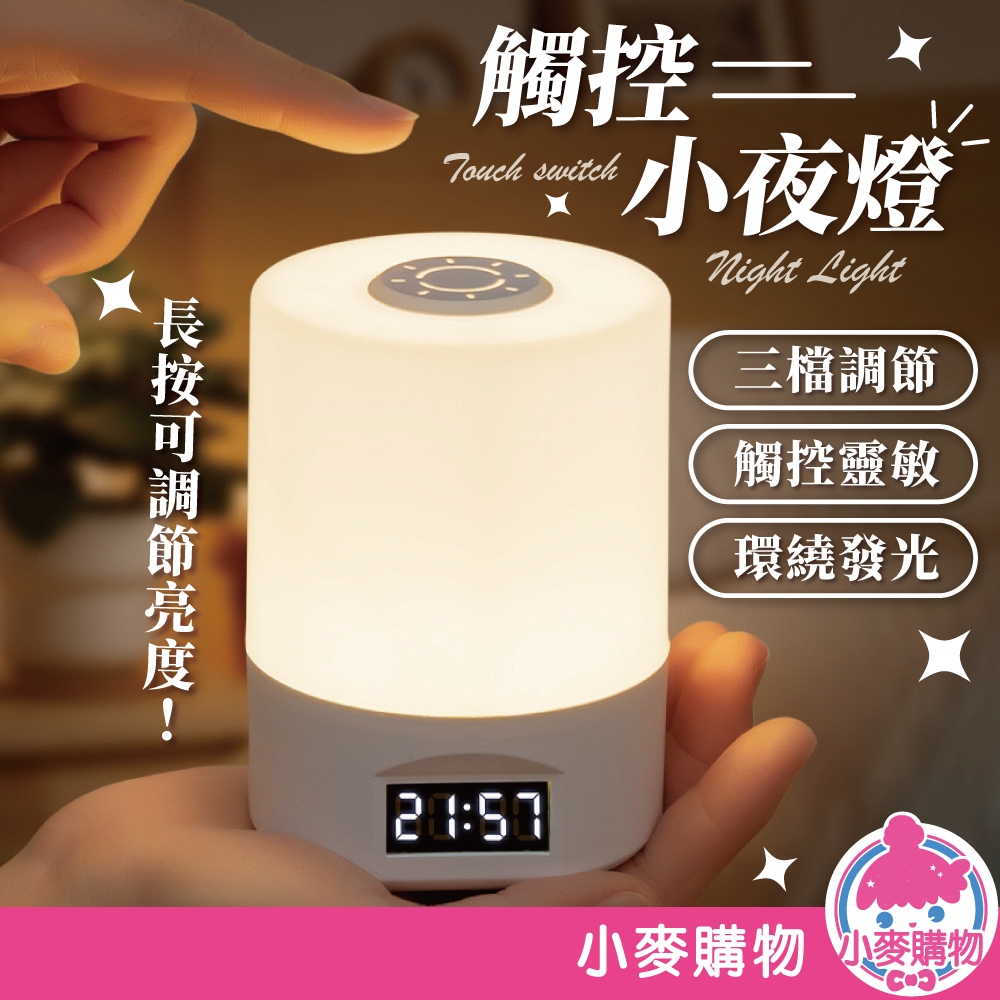 觸控小夜燈 床頭小夜燈 無極調光 充電夜燈 led夜燈 充電小夜燈 觸控夜燈【小麥購物】【G912】時間顯示 小麥購物