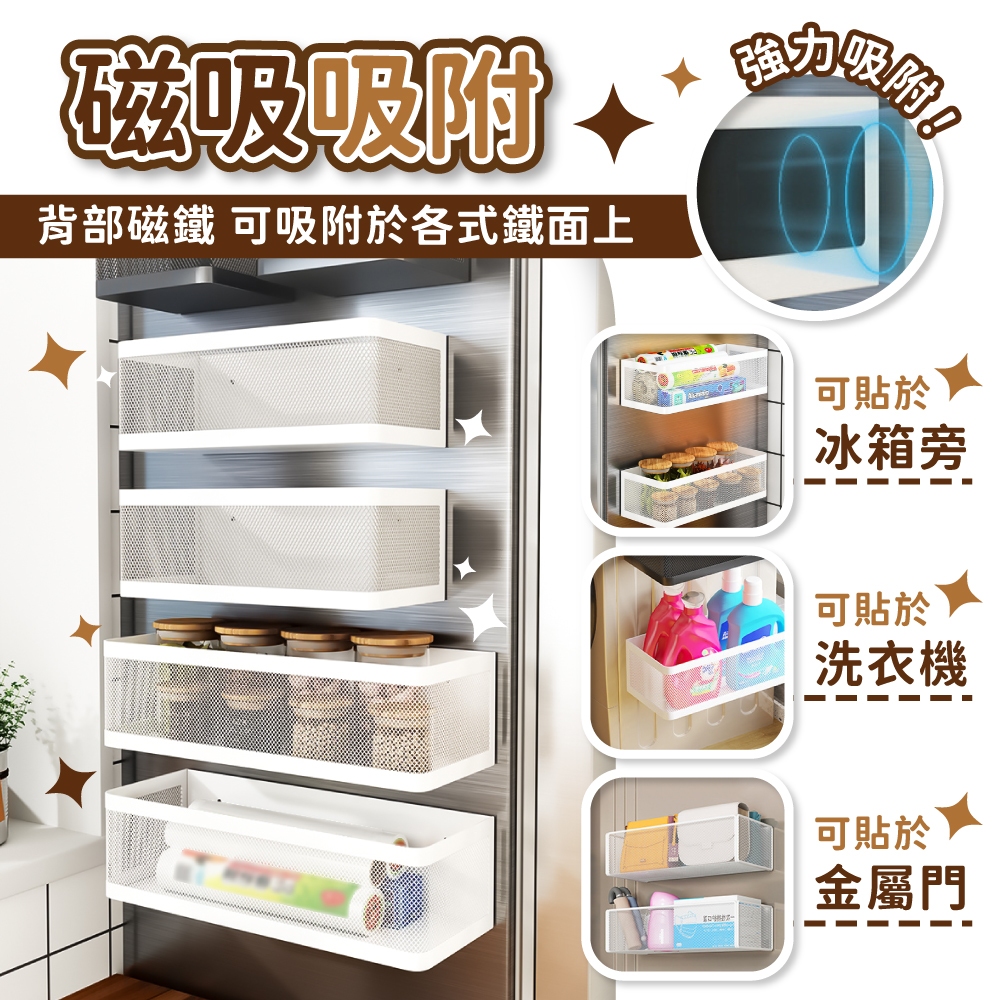 磁吸置物架 冰箱磁吸置物架 免打孔置物籃 洗衣機磁吸式收納架 冰箱側吸置物架 廚房收納架【小麥購物】【C555】黑色|小|黑色|大|黑色|特大|白色|小|白色|大|白色|特大Kitchen Racks 小麥購物
