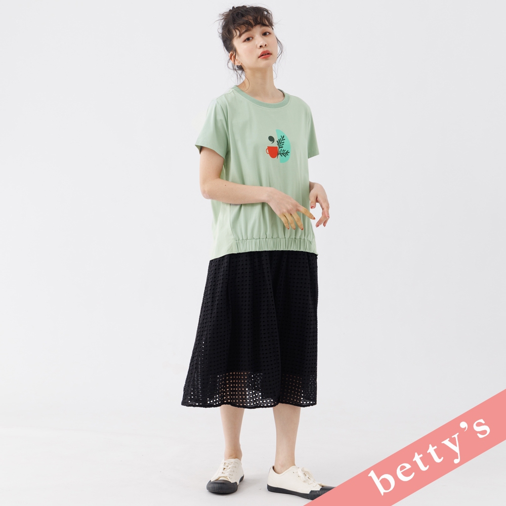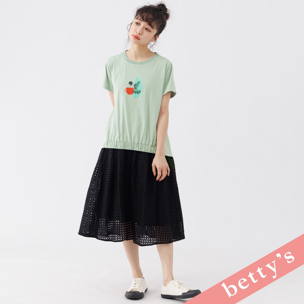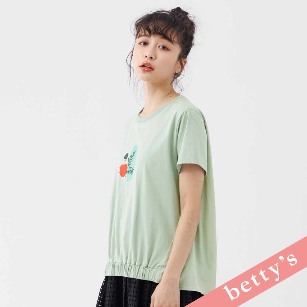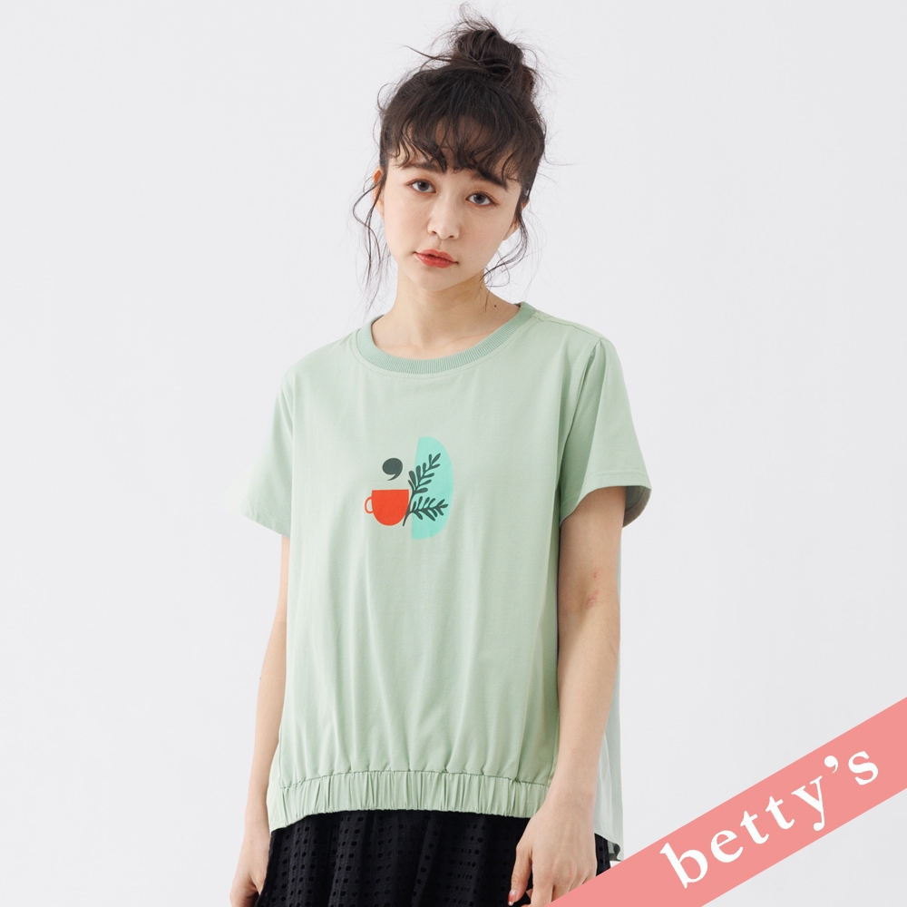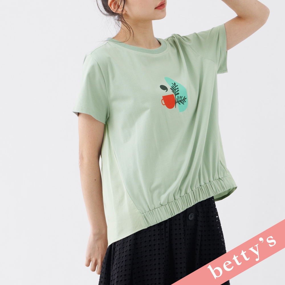 betty’s貝蒂思(31)午茶印花拼接下襬抽皺T-shirt(淺綠)淺綠,M|淺綠,L|淺綠,XLT-shirtsbetty’s貝蒂思
