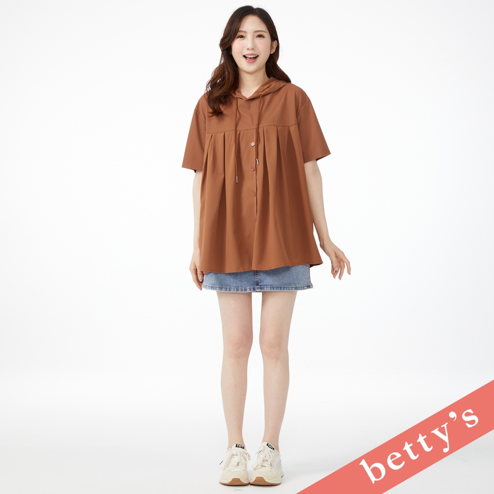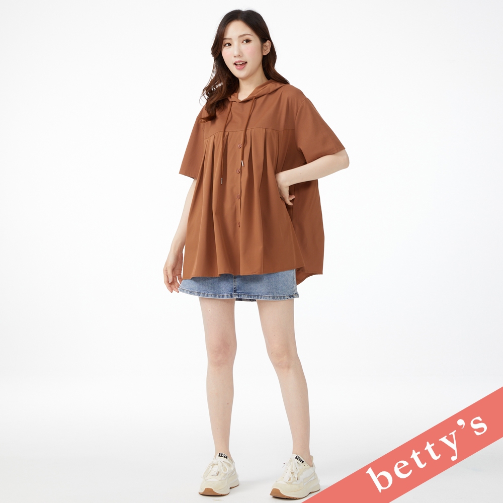 betty’s貝蒂思(41)拼接壓褶寬版連帽上衣(咖啡)咖啡,FHoodiesbetty’s貝蒂思