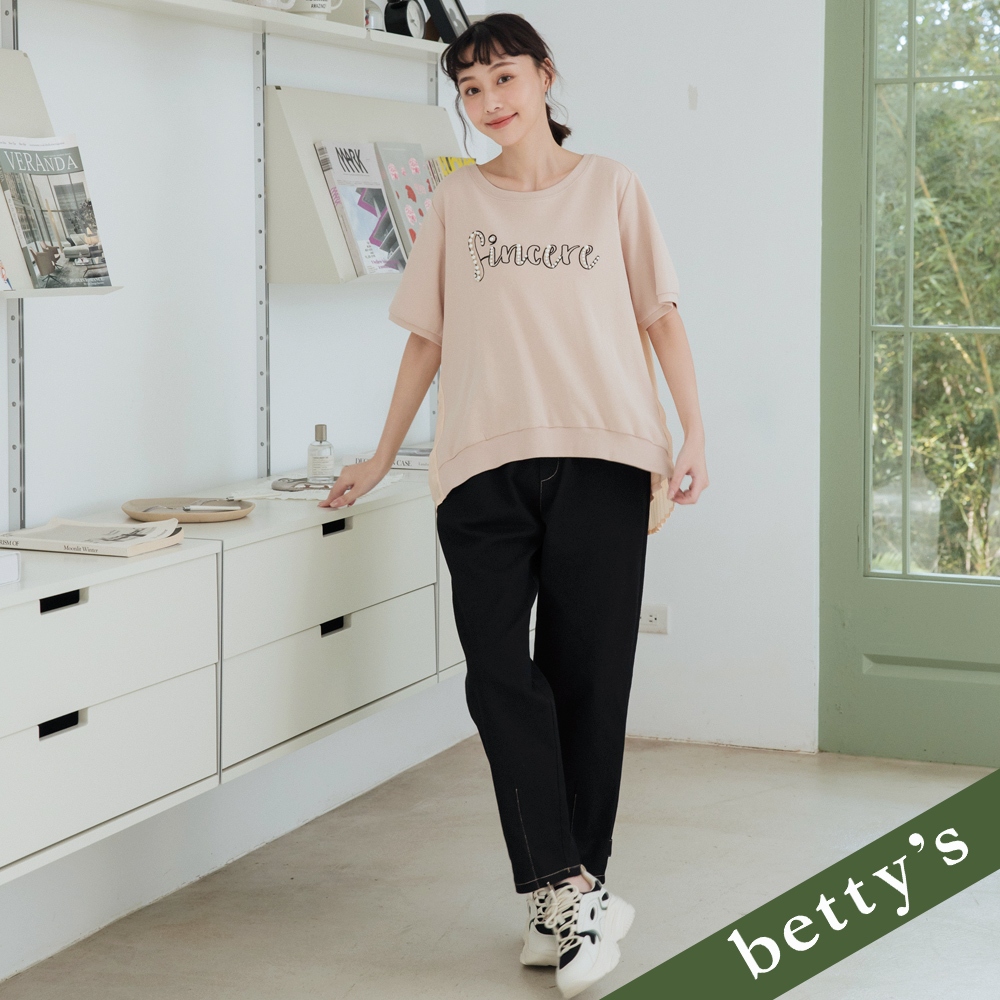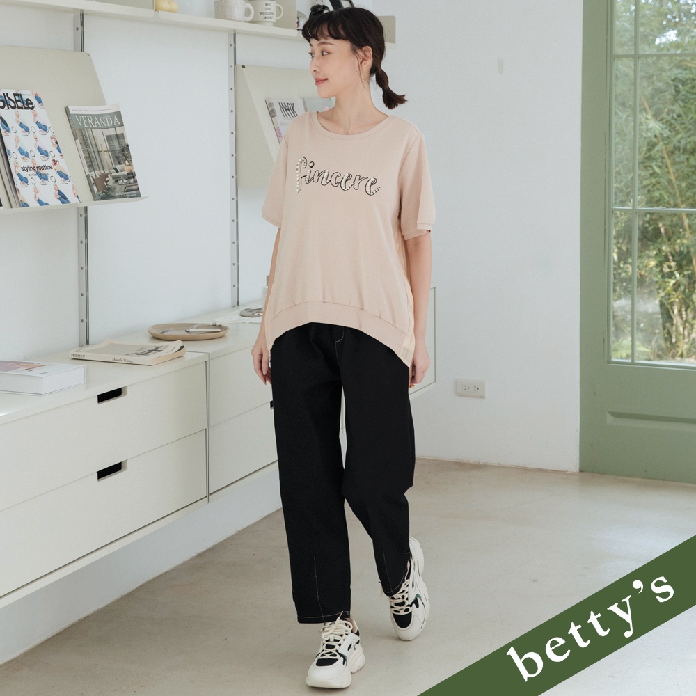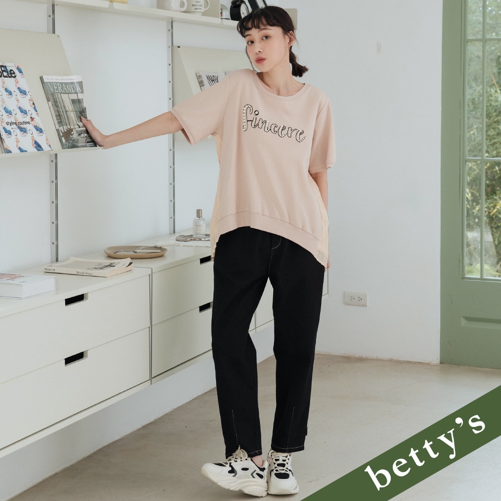 betty’s貝蒂思(31)橫條紋拼接下擺抽繩七分袖T-shirt(共二色)