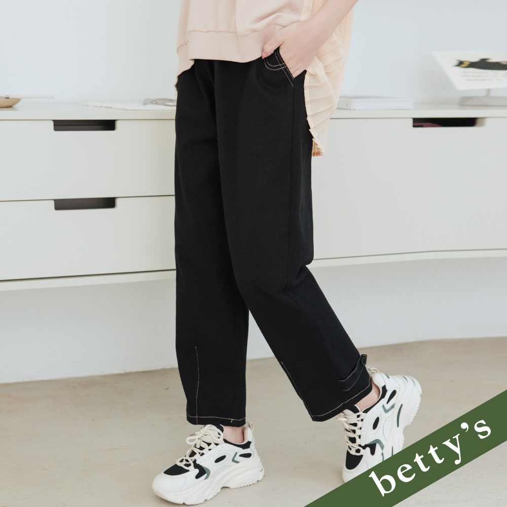 betty’s貝蒂思(35)腰鬆緊抽繩跳色壓線休閒褲(黑色)黑色,M|黑色,L|黑色,XL|黑色,2XLPantsbetty’s貝蒂思