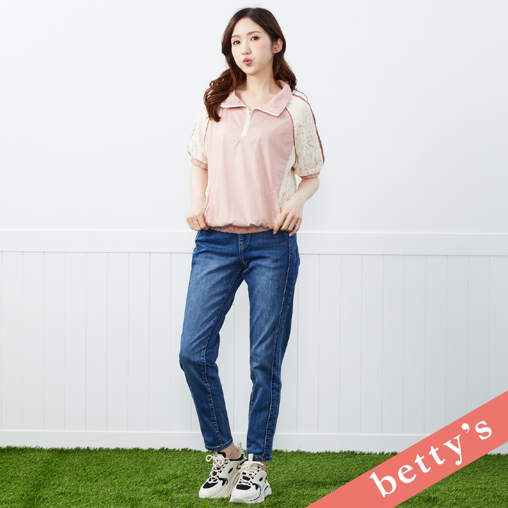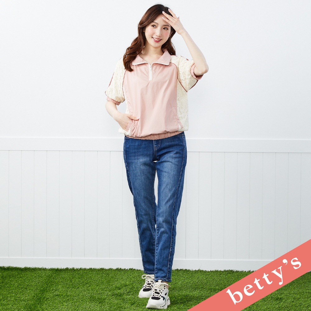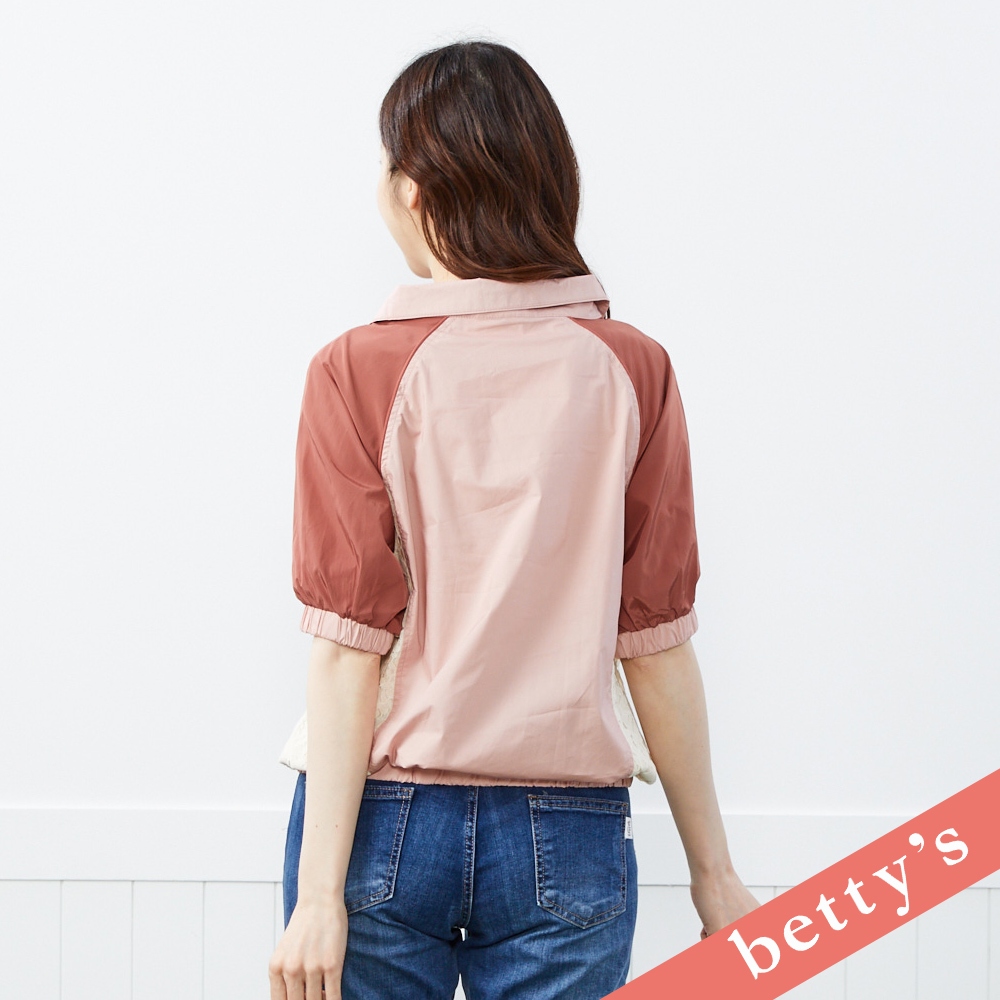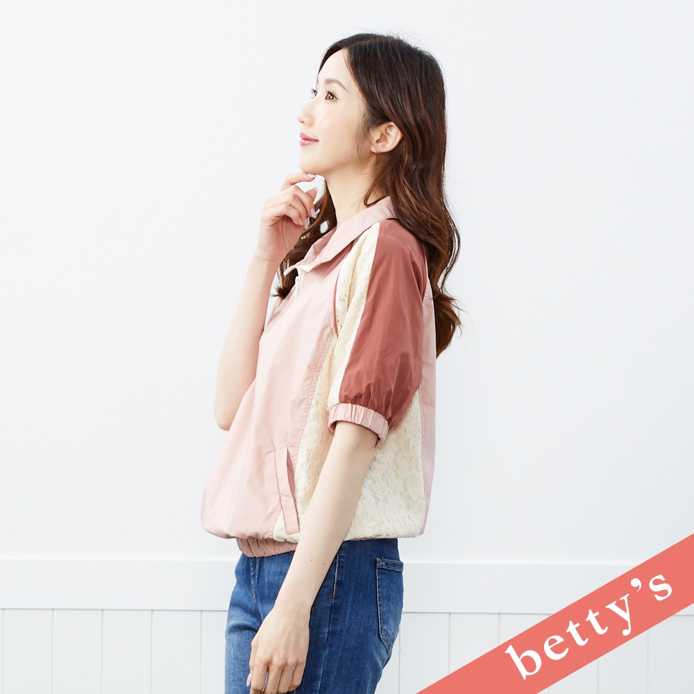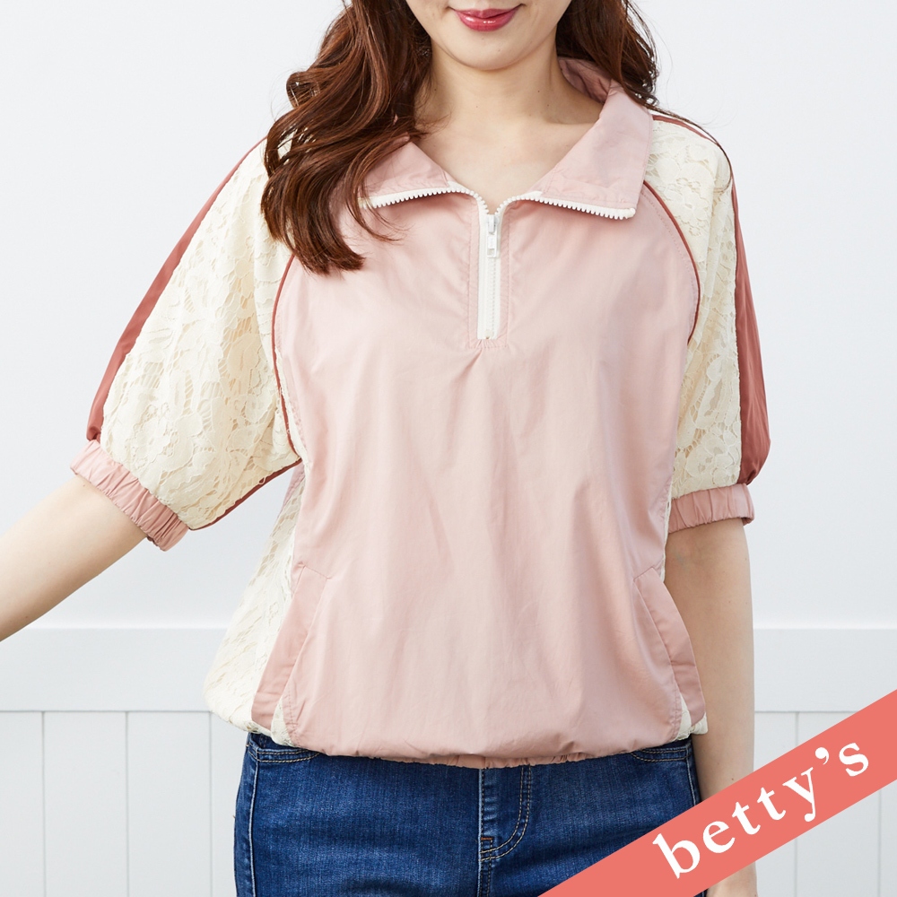 betty’s貝蒂思(41)花花蕾絲拼接立領短袖上衣(粉色)粉色,M|粉色,L|粉色,XLT-shirtsbetty’s貝蒂思
