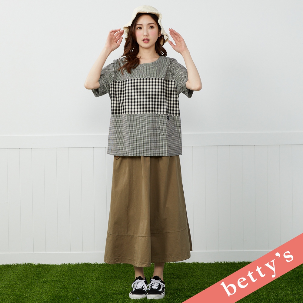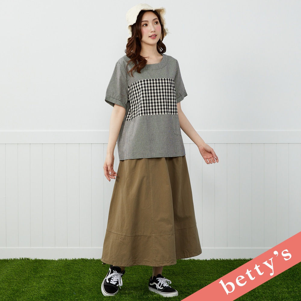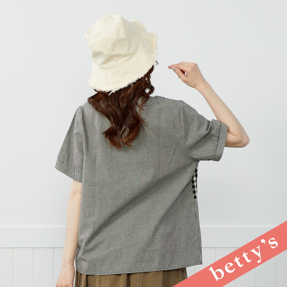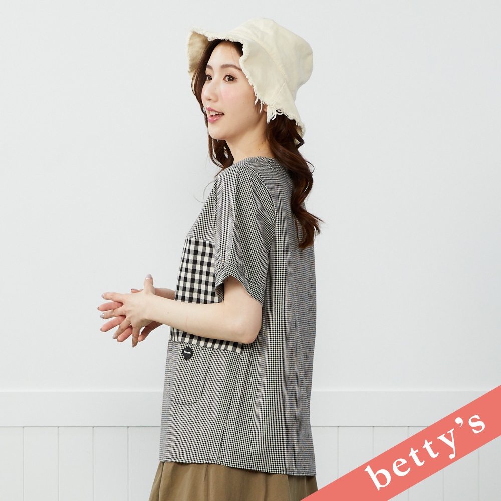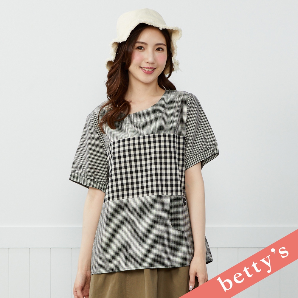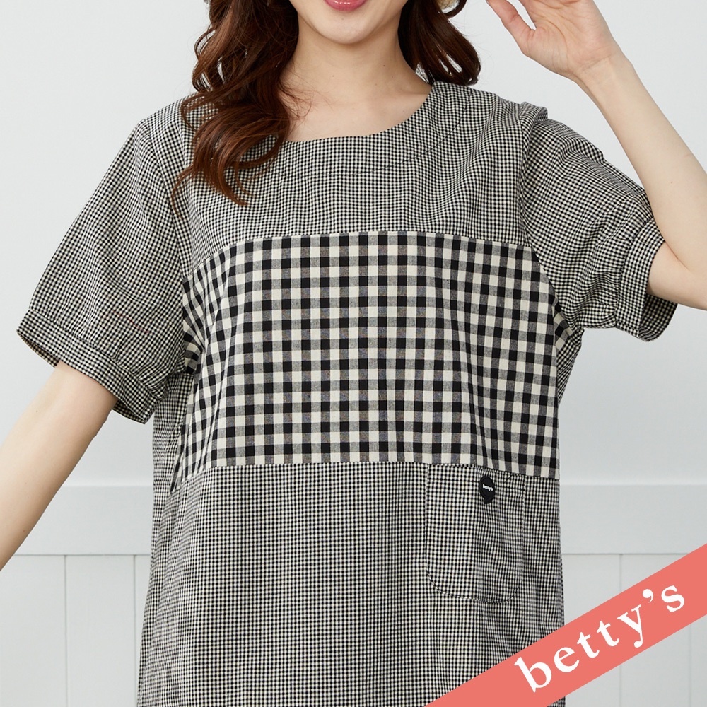 betty’s貝蒂思(41)百變日系格紋拼接短袖上衣(黑色)黑色,M|黑色,L|黑色,XLT-shirtsbetty’s貝蒂思