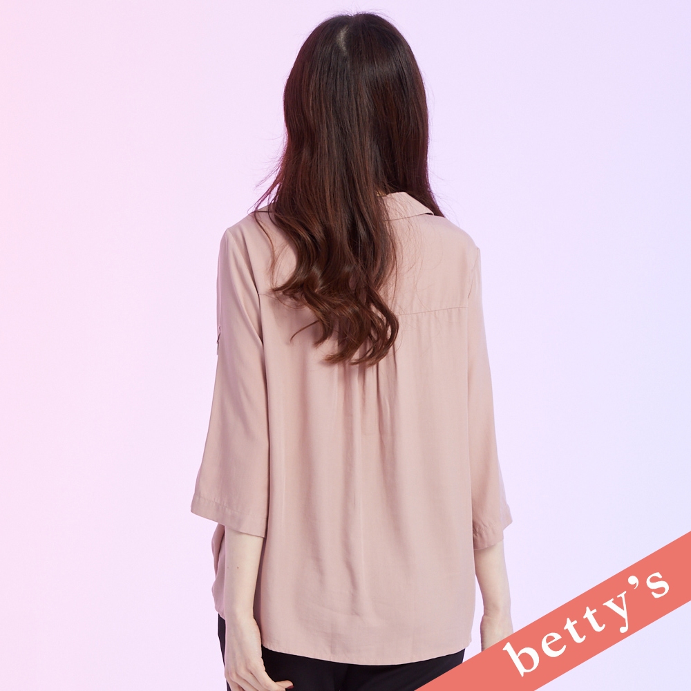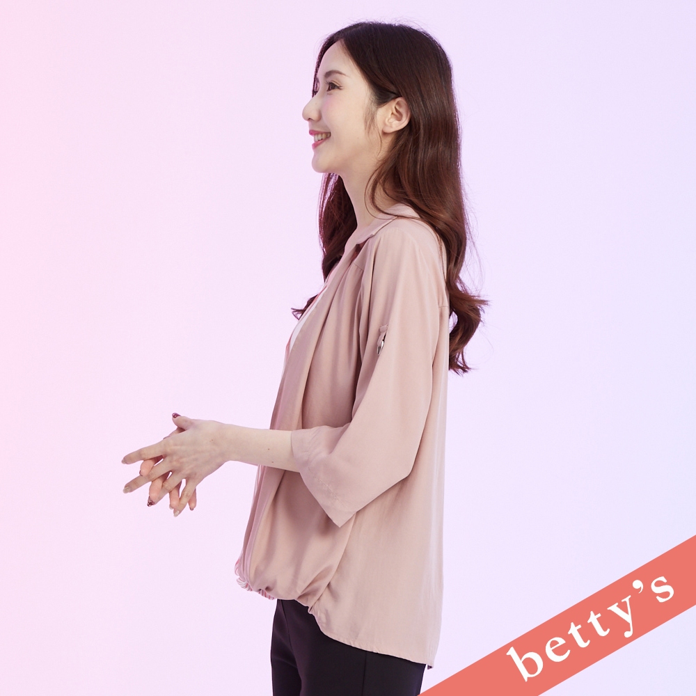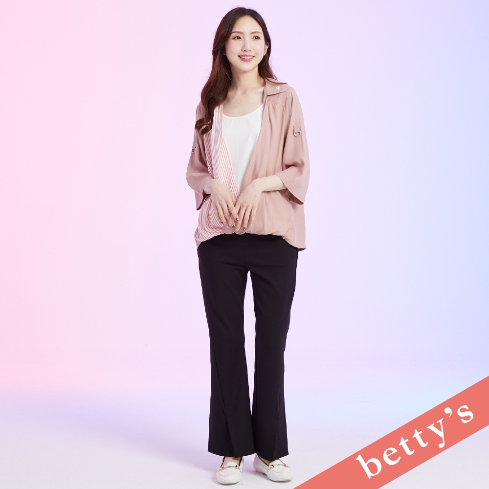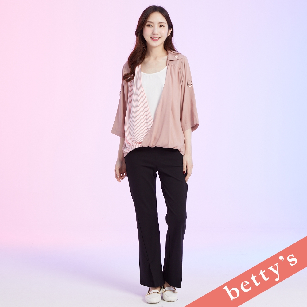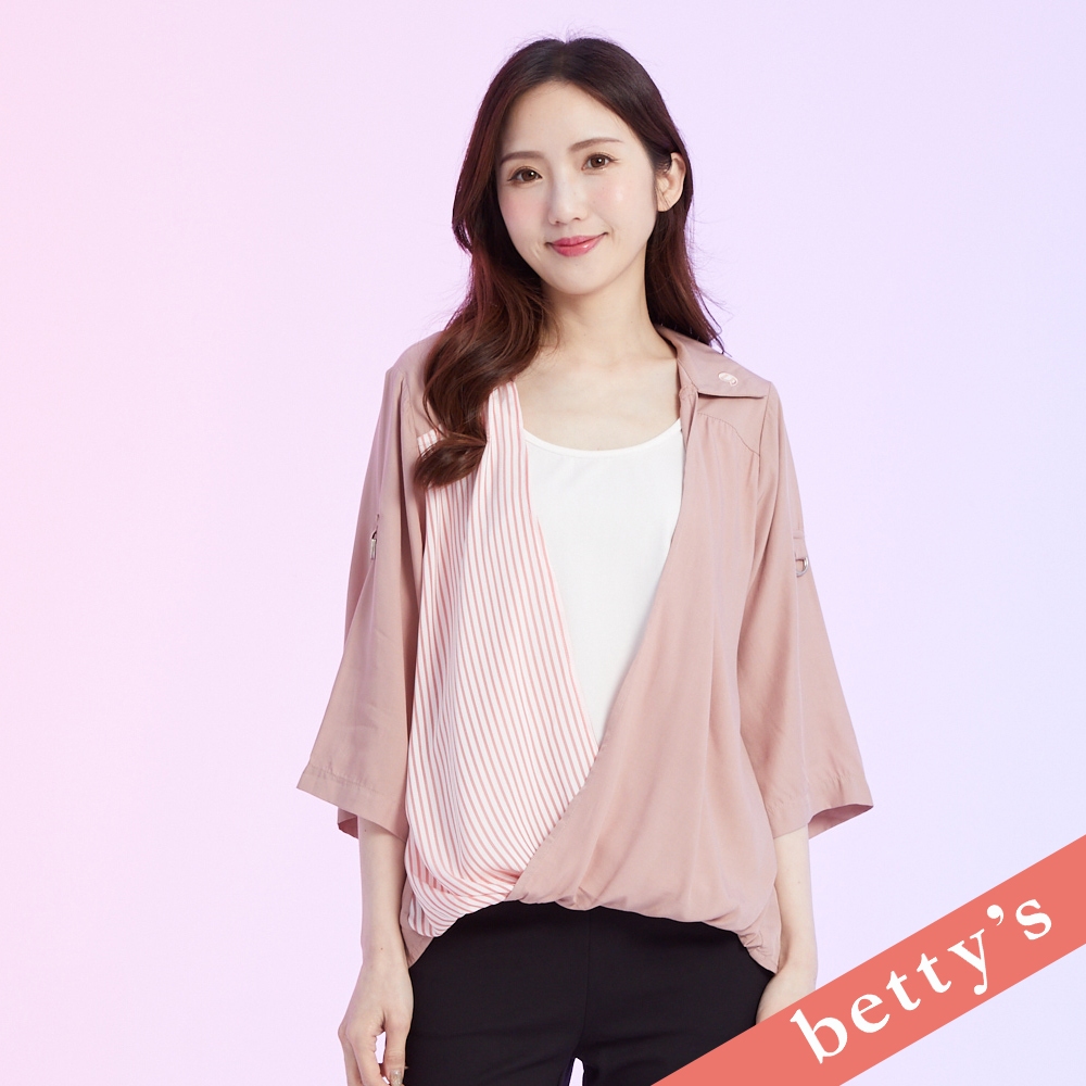 betty’s貝蒂思(41)假兩件條紋斜接七分袖上衣(深粉)深粉,M|深粉,L|深粉,XLT-shirtsbetty’s貝蒂思