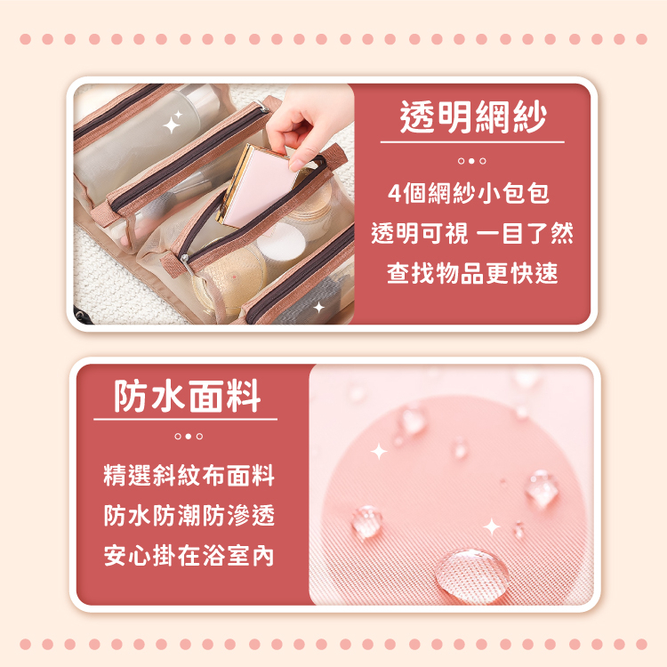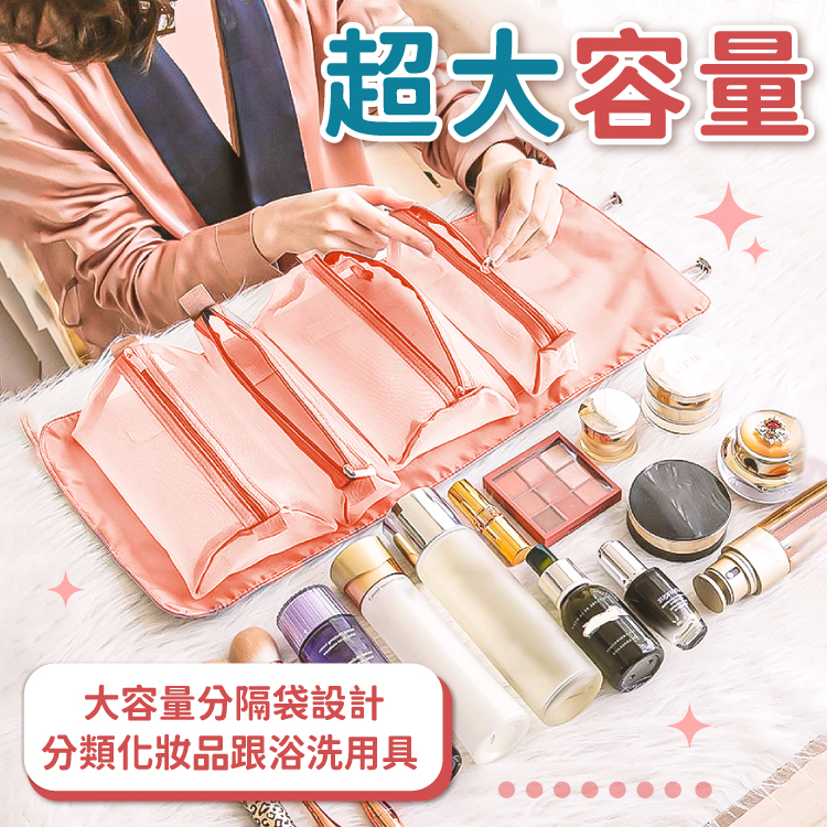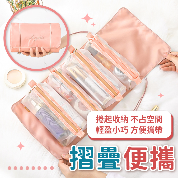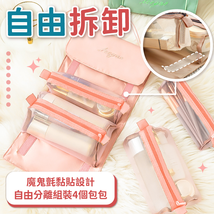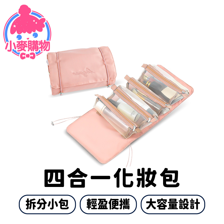 四合一化妝包 魔鬼氈化妝包 收納包 可拆式 可拆卸 手提收納 分類包 洗漱包 盥洗包 化妝包【小麥購物】【C436】神秘黑|櫻花粉Makeup Accessories 小麥購物