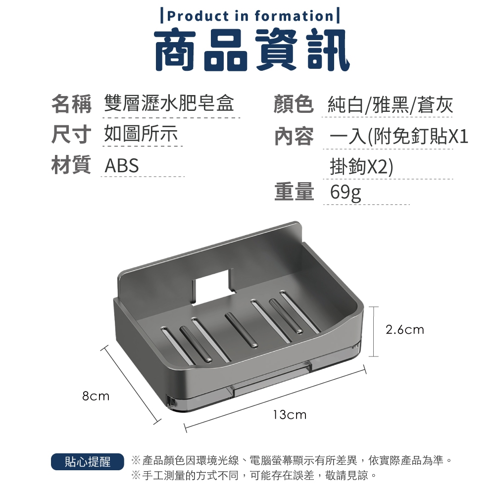 雙層瀝水肥皂盒 瀝水 肥皂架 收納 肥皂盒 肥皂架 香皂架 旅行肥皂盒 肥皂置物架 壁掛皂盒【小麥購物】【Y247】純白|雅黑|蒼灰Soap Dispensers, Holders & Boxes 小麥購物