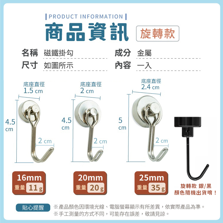 磁鐵掛勾 磁吸掛勾 掛勾 掛鉤 磁吸 磁吸掛鉤 磁吸鉤 磁鐵掛鉤 磁性掛勾 吸鐵掛勾 多功能掛勾【小麥購物】【D052】一般款|12mm|一入|一般款|20mm|一入|一般款|32mm|一入|旋轉款|16mm|一入|旋轉款|20mm|一入|旋轉款|25mm|一入|一般款|16mm|一入Hooks 小麥購物