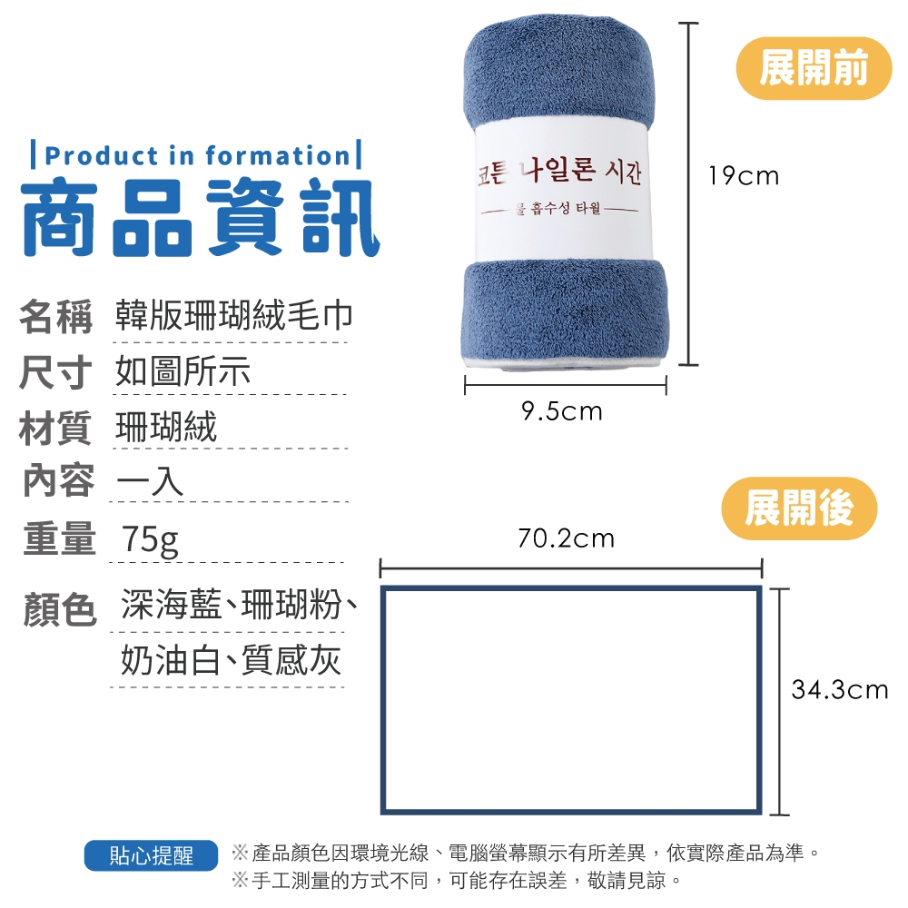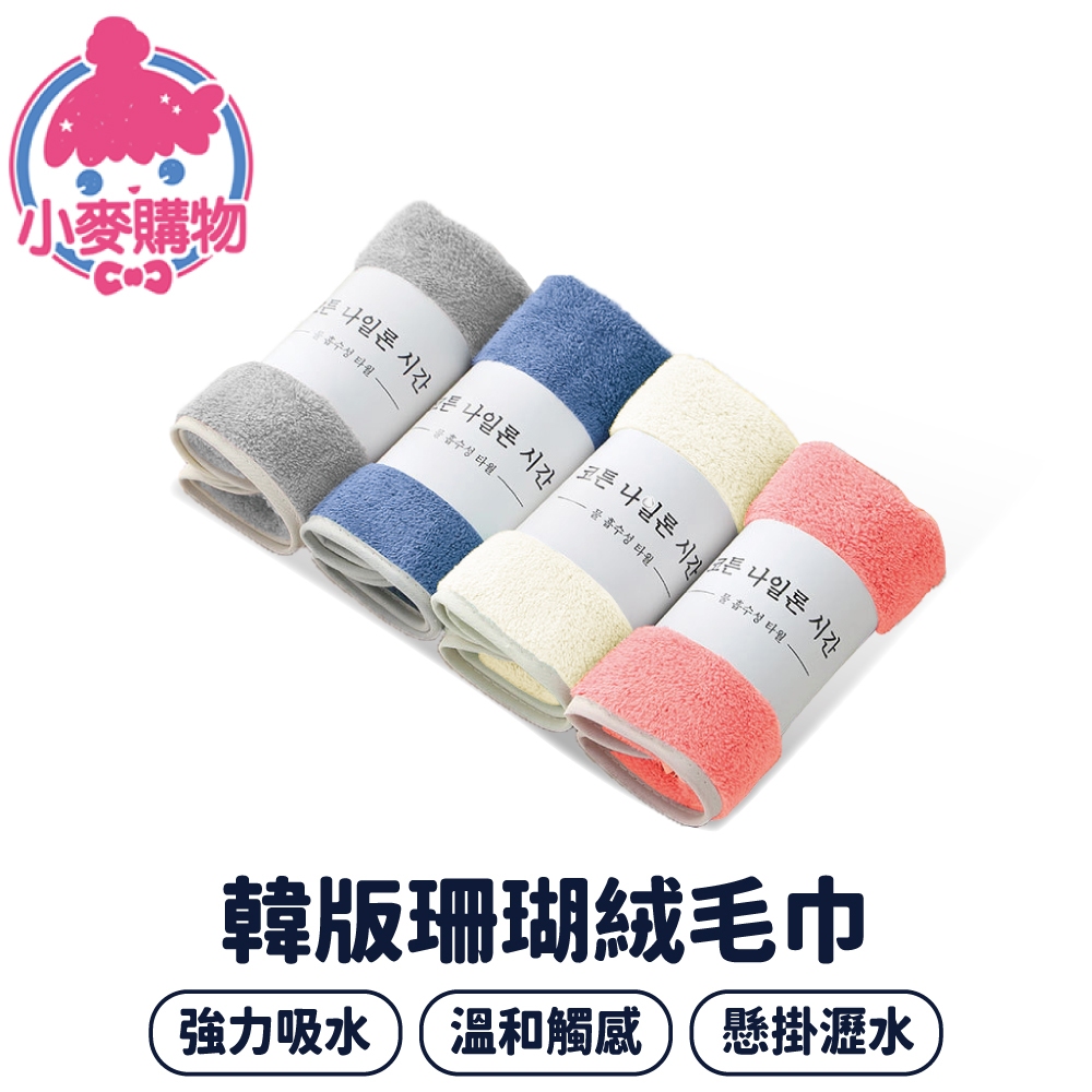 韓版珊瑚絨毛巾 洗臉巾 吸水毛巾 小毛巾 擦手毛巾 珊瑚絨抹布 擦手布 兒童毛巾 擦手巾 吸水【小麥購物】【Y931】奶油白|質感灰|珊瑚粉|深海藍Towels & Bathrobes 小麥購物