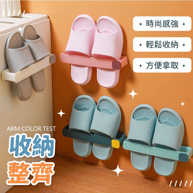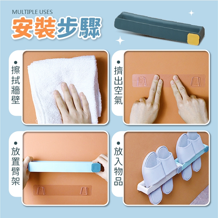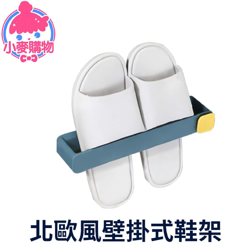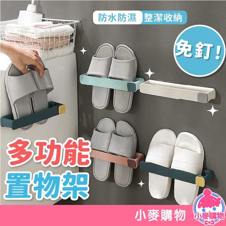 北歐風壁掛式鞋架 多功能壁架 拖鞋收納架 壁掛鞋架 黏貼式鞋架 免釘 室內拖 收納 毛巾架 鞋架【小麥購物】【Y678】深藍|櫻花粉|象牙白Shelves & Racks 小麥購物