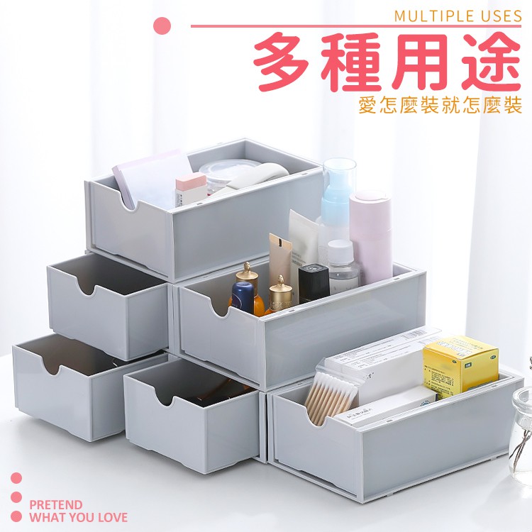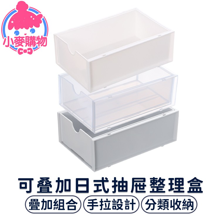 日式抽屜整理盒 抽屜盒 整理盒 收納盒 小物收納 收納抽屜 可疊加 桌上收納 多層收納 飾品收納【小麥購物】【C001】灰色|白色|透明Storage Boxes, Bags & Baskets 小麥購物