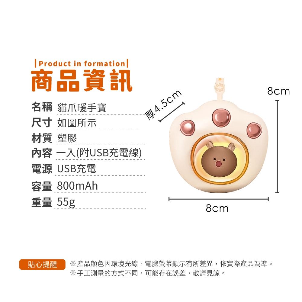 貓爪暖手寶 暖手寶 暖手器 暖手 禮物 隨身貓爪暖手寶 冬季取暖 USB暖手神器 迷你暖手寳【小麥購物】【G751】一入 小麥購物