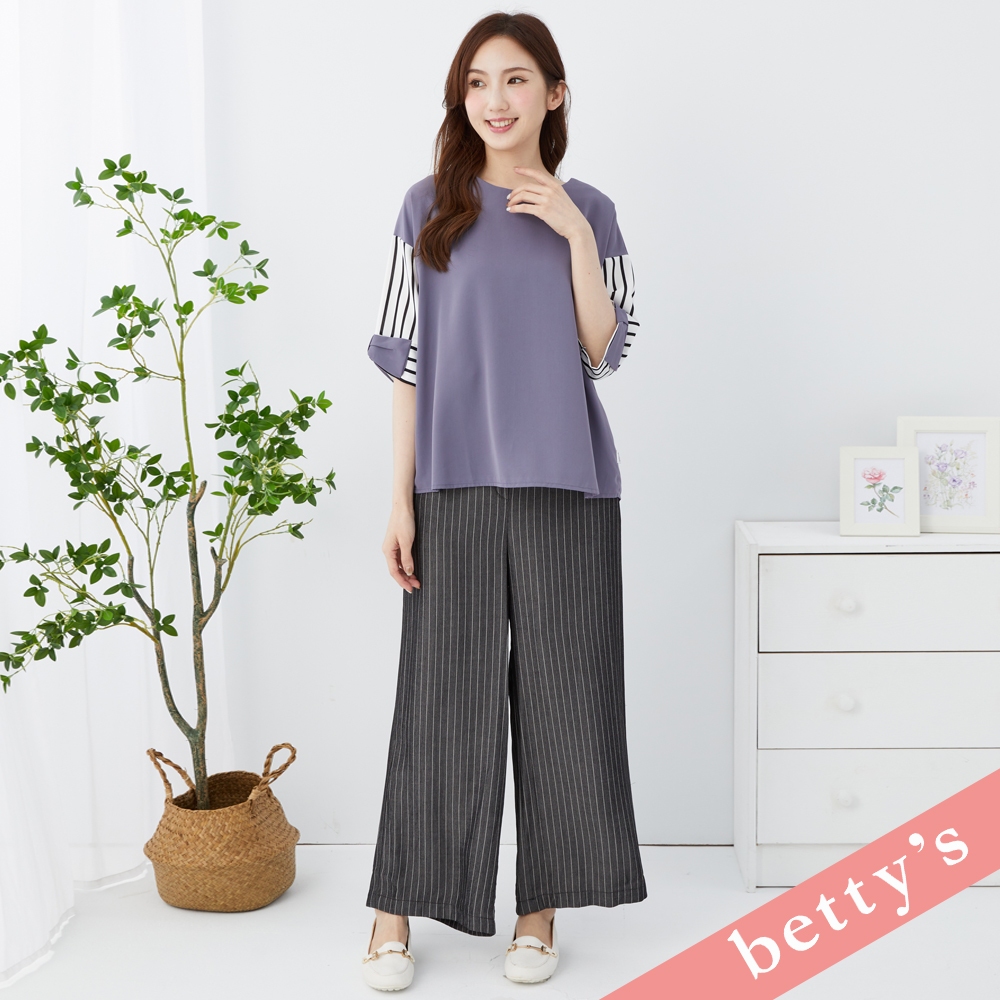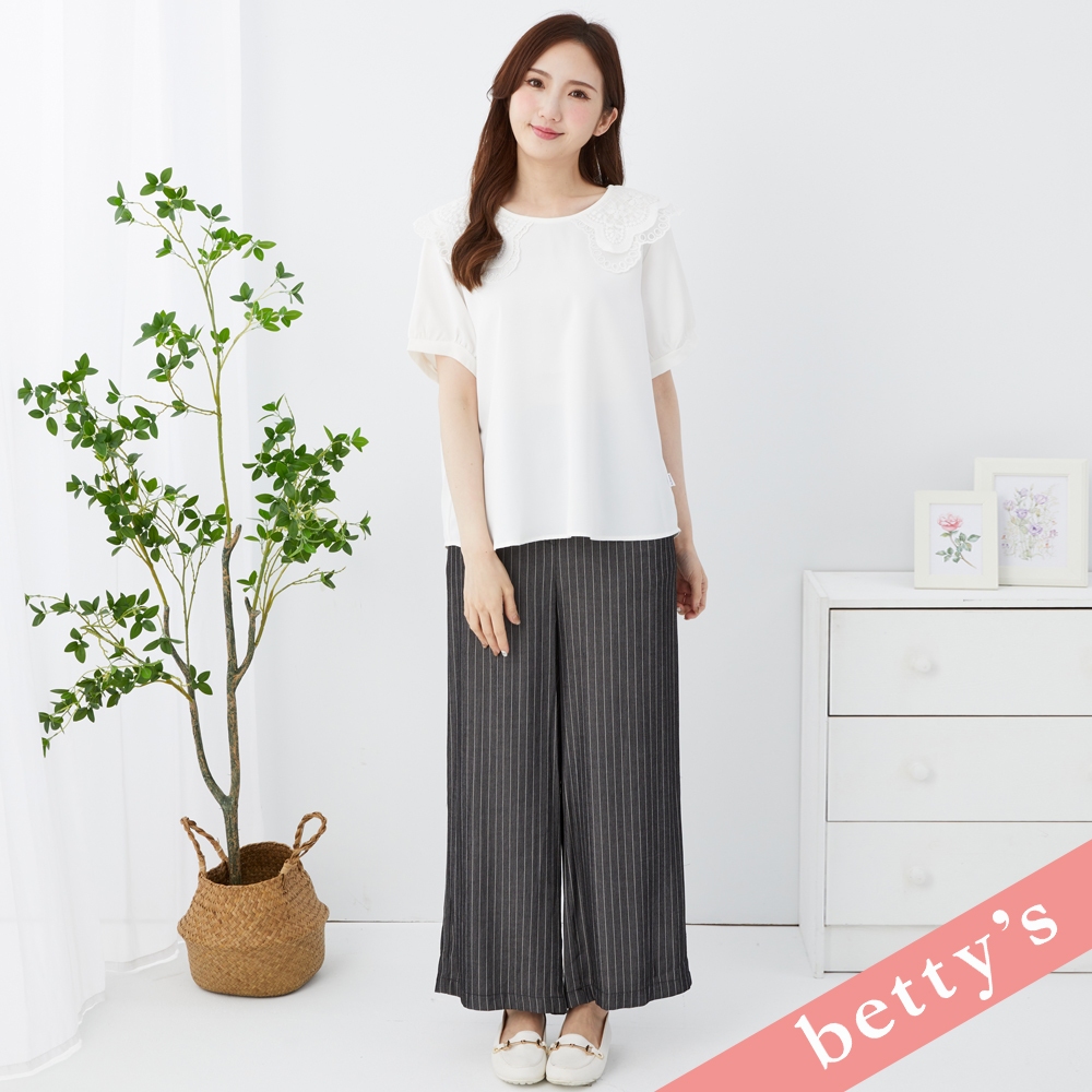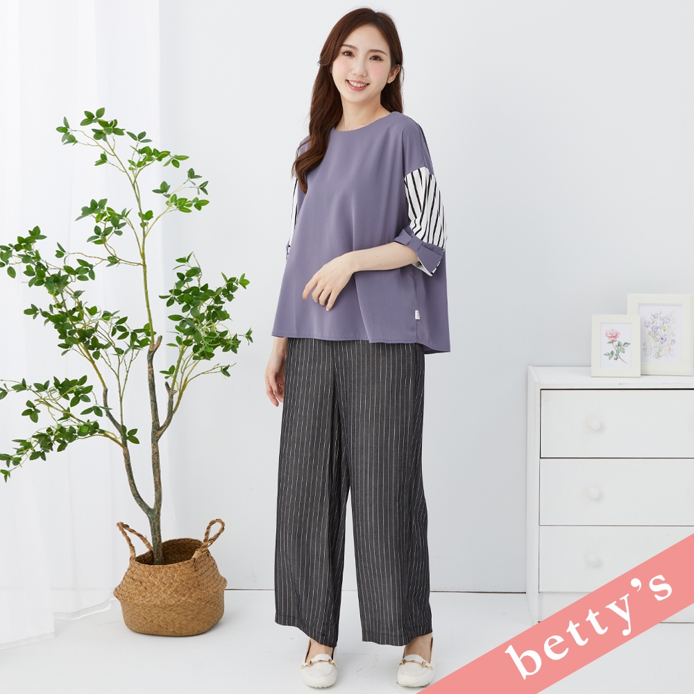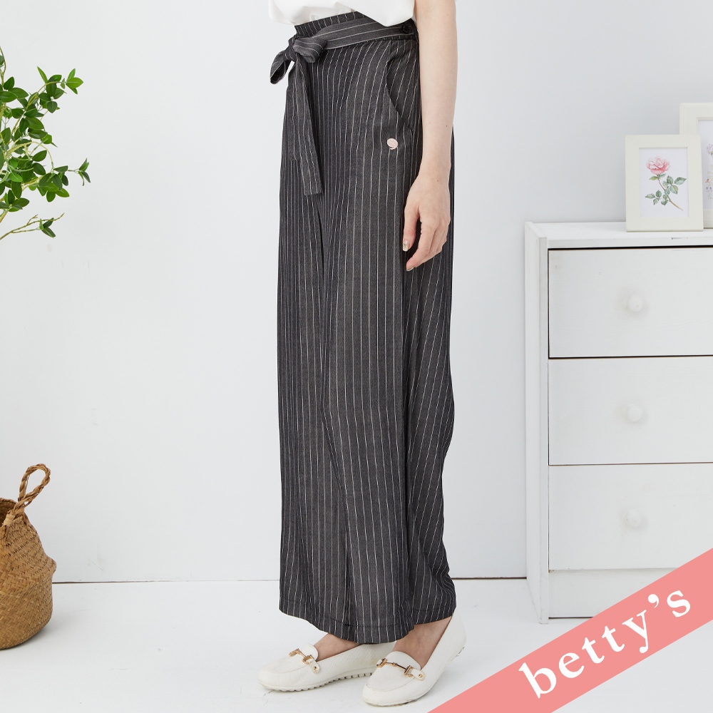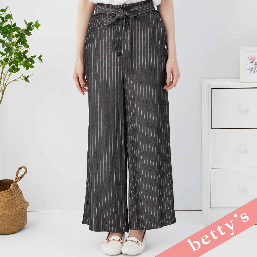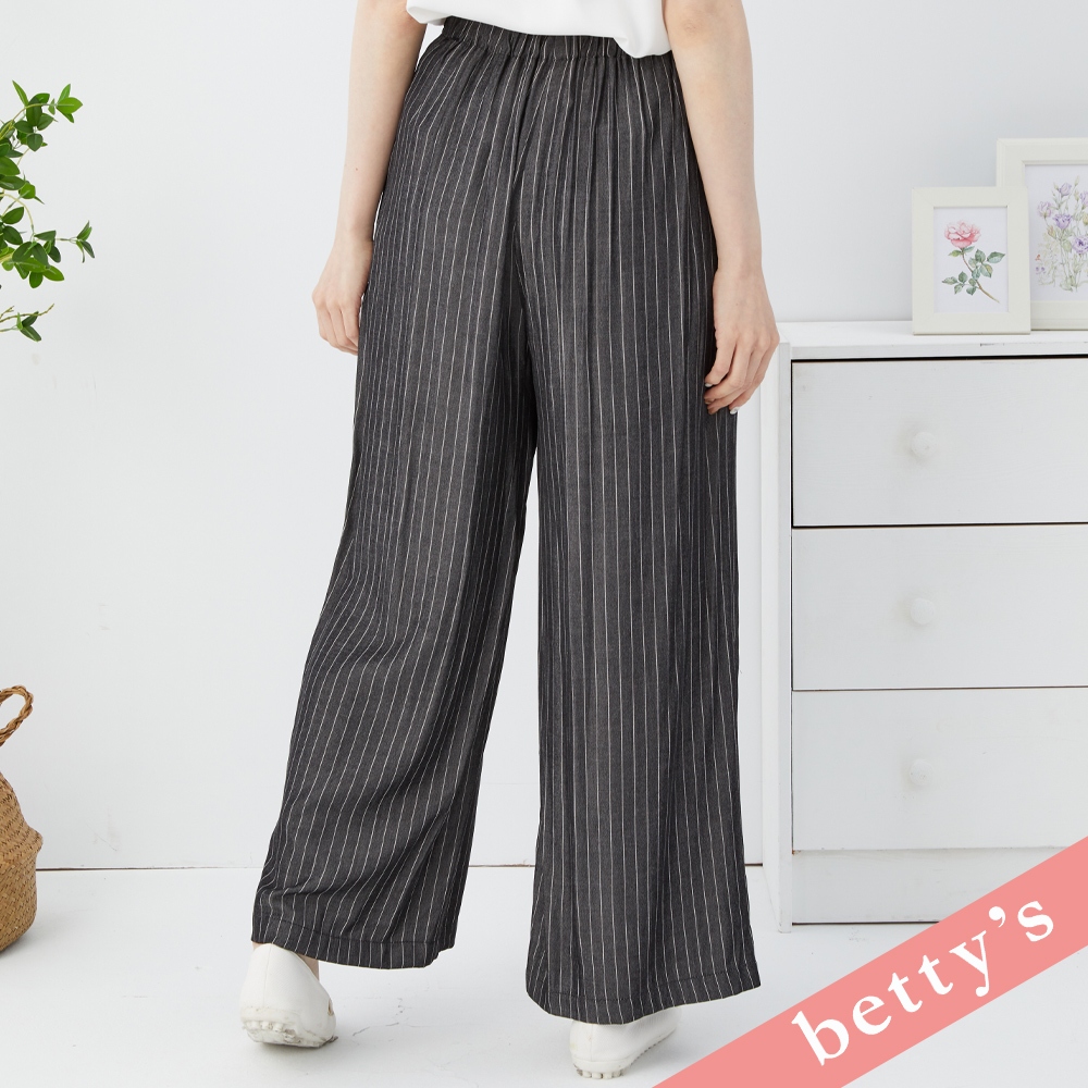 betty’s貝蒂思(31)腰鬆緊直條紋腰帶寬褲(黑色)黑色,M|黑色,LPantsbetty’s貝蒂思