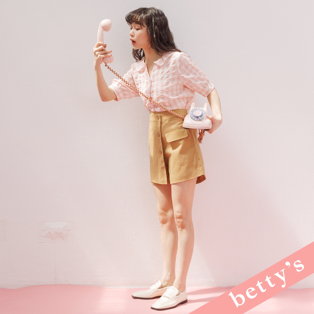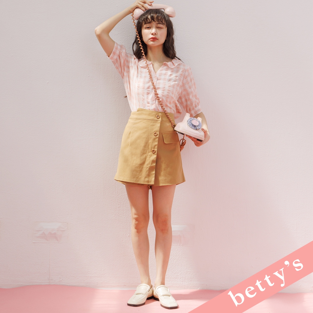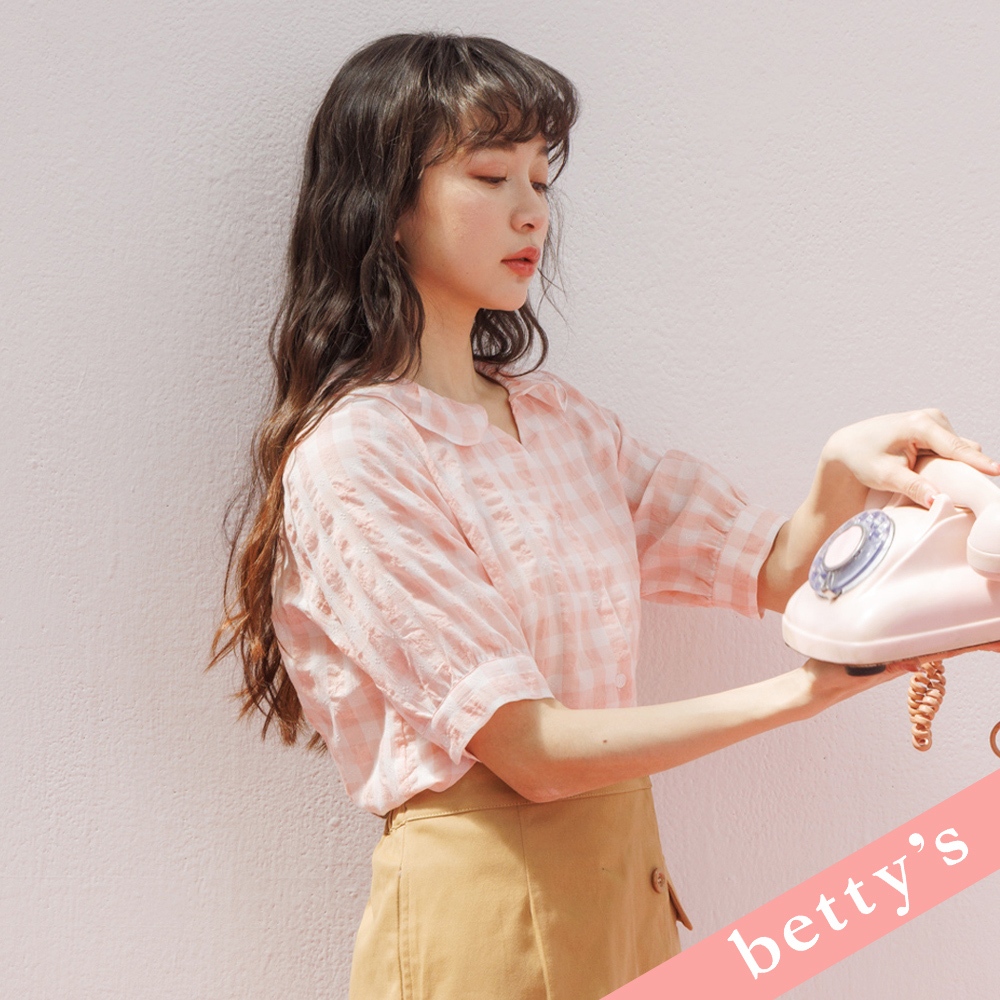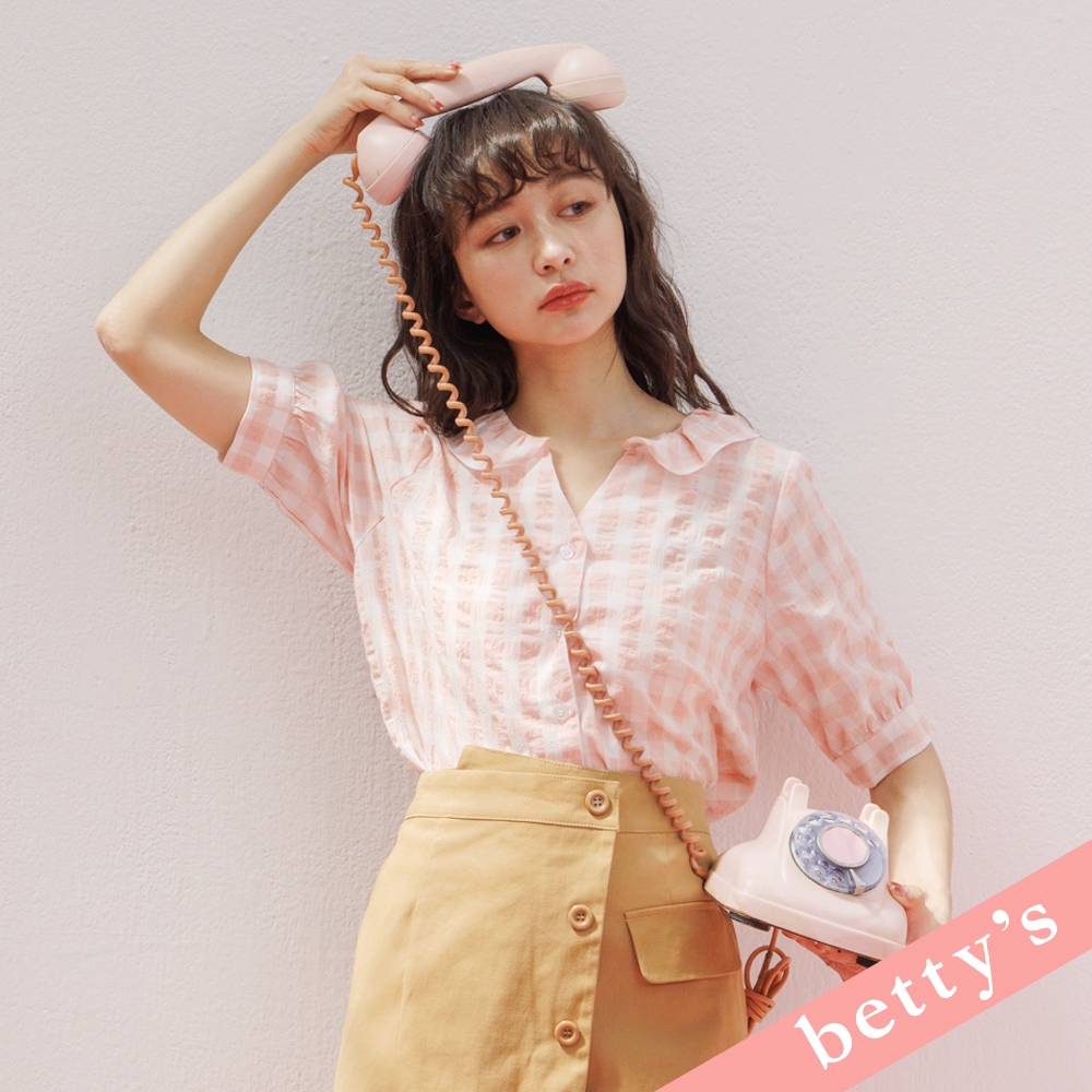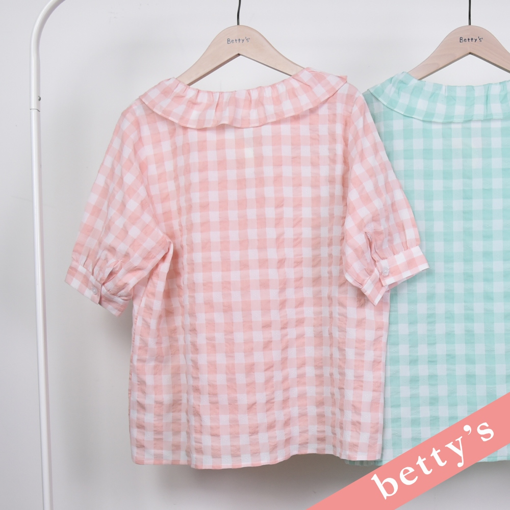 betty’s貝蒂思(31)荷葉邊領開襟格紋襯衫(粉橘)粉橘,M|粉橘,LShirts & Blousesbetty’s貝蒂思