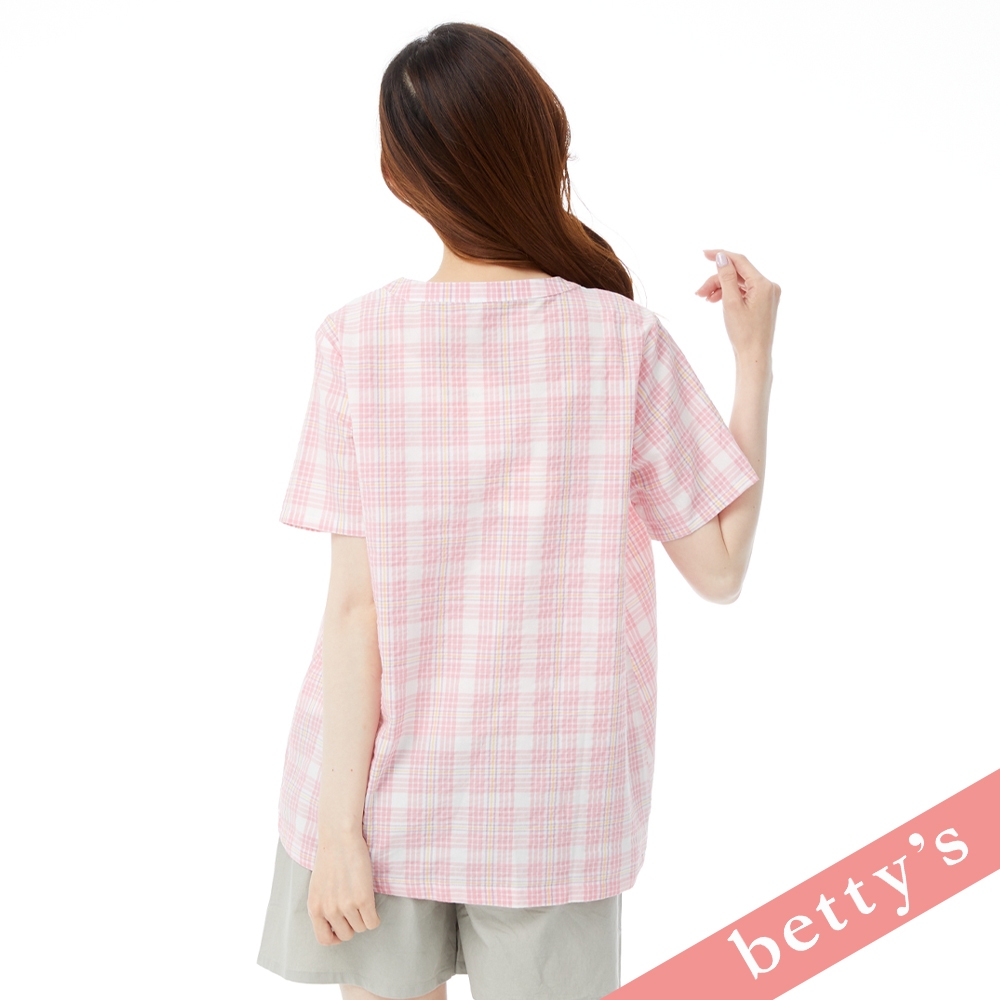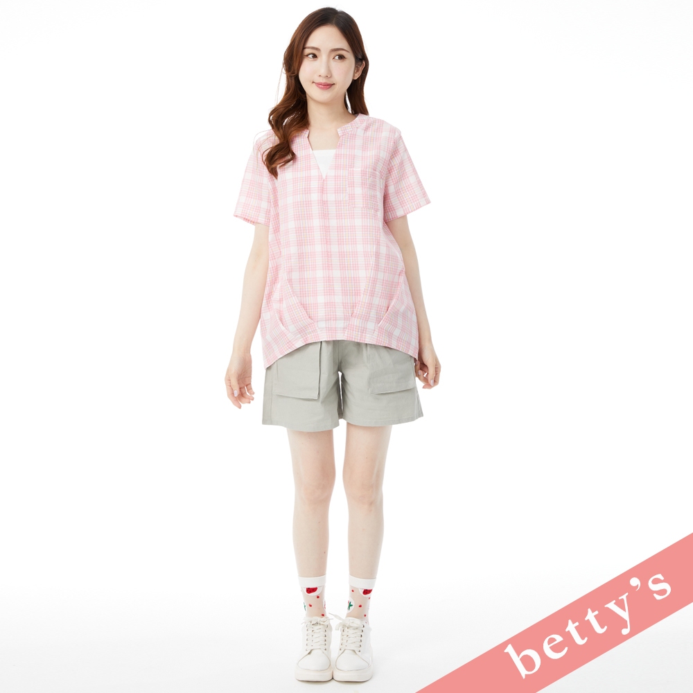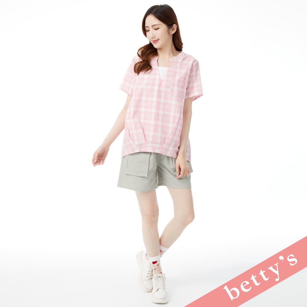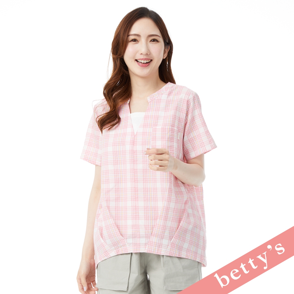 betty’s貝蒂思(31)假兩件格紋V領壓摺上衣(粉色)粉色,M|粉色,L|粉色,XLShirts & Blousesbetty’s貝蒂思