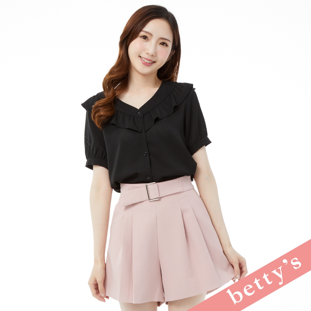betty’s貝蒂思(05)LOGO繡線拼接荷葉T-shirt(黑色)黑色,M|黑色,L|黑色,XLT-shirtsbetty’s貝蒂思