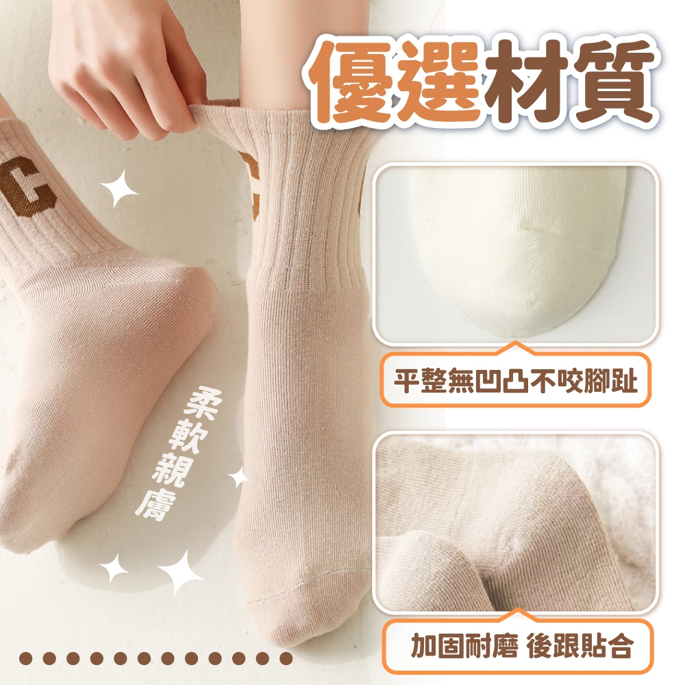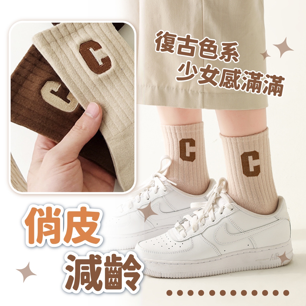 奶茶色字母中筒襪 字母C字襪 襪子 可愛字母襪 中筒襪 學院風素色潮流中筒 大地色【小麥購物】【E147】