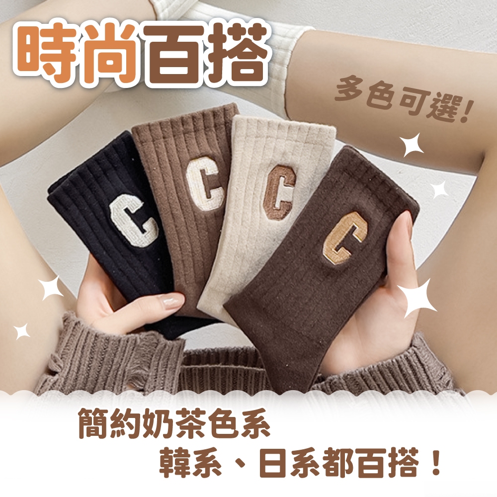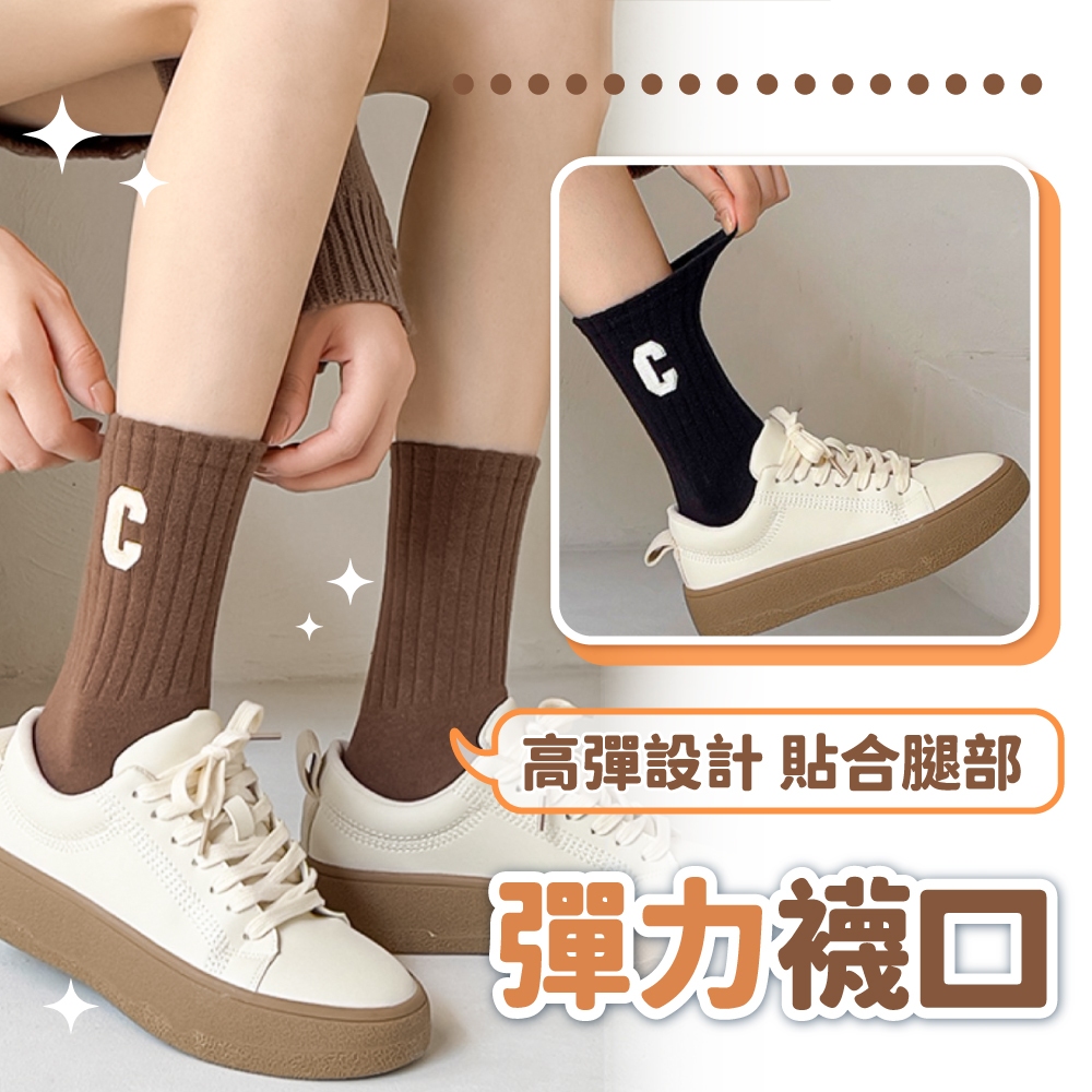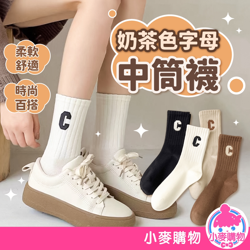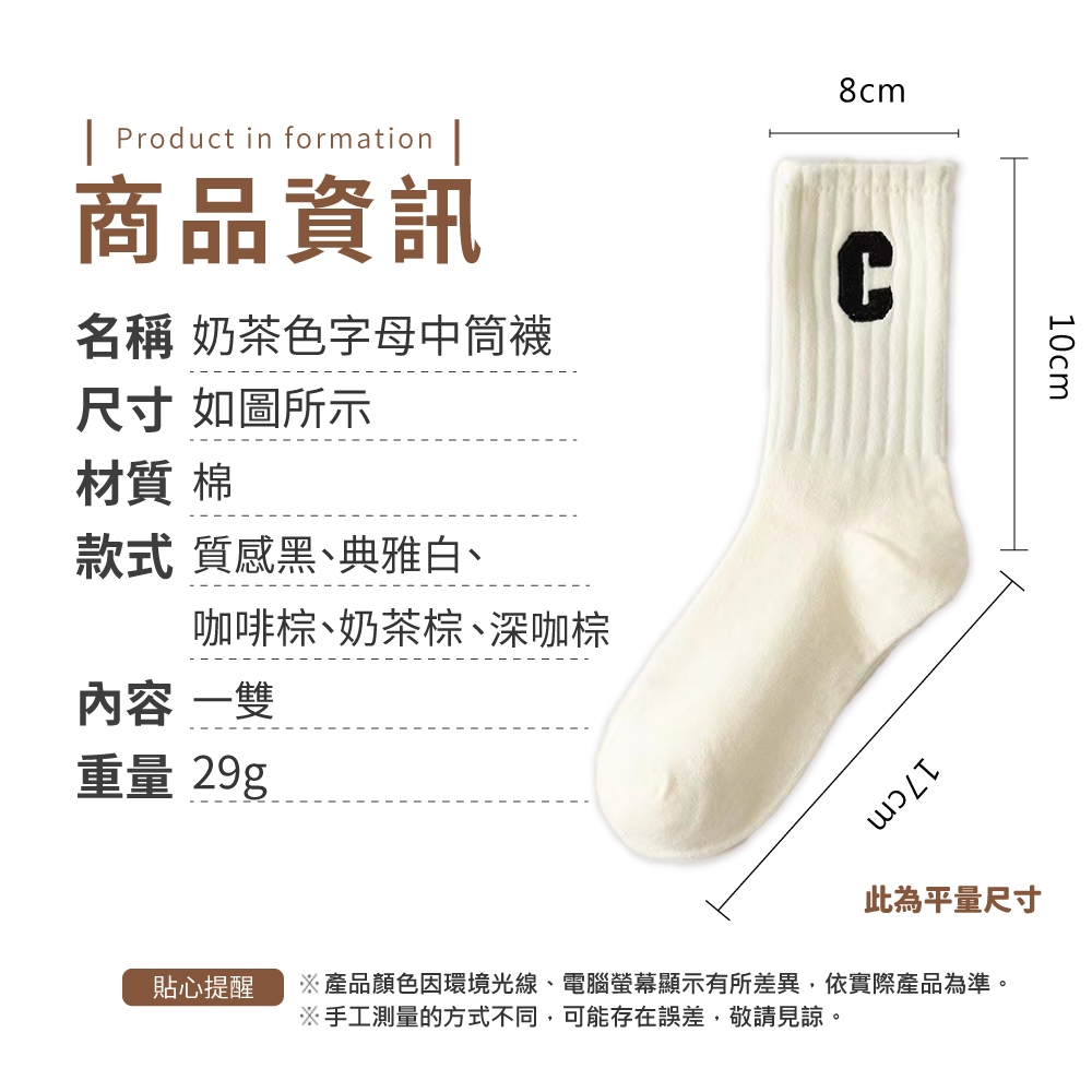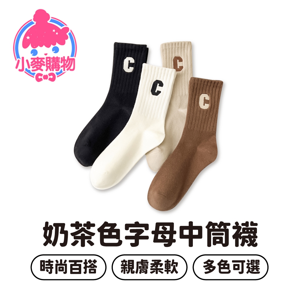 奶茶色字母中筒襪 字母C字襪 襪子 可愛字母襪 中筒襪 學院風素色潮流中筒 大地色【小麥購物】【E147】深咖棕|奶茶棕|質感黑|典雅白|咖啡棕Socks 小麥購物