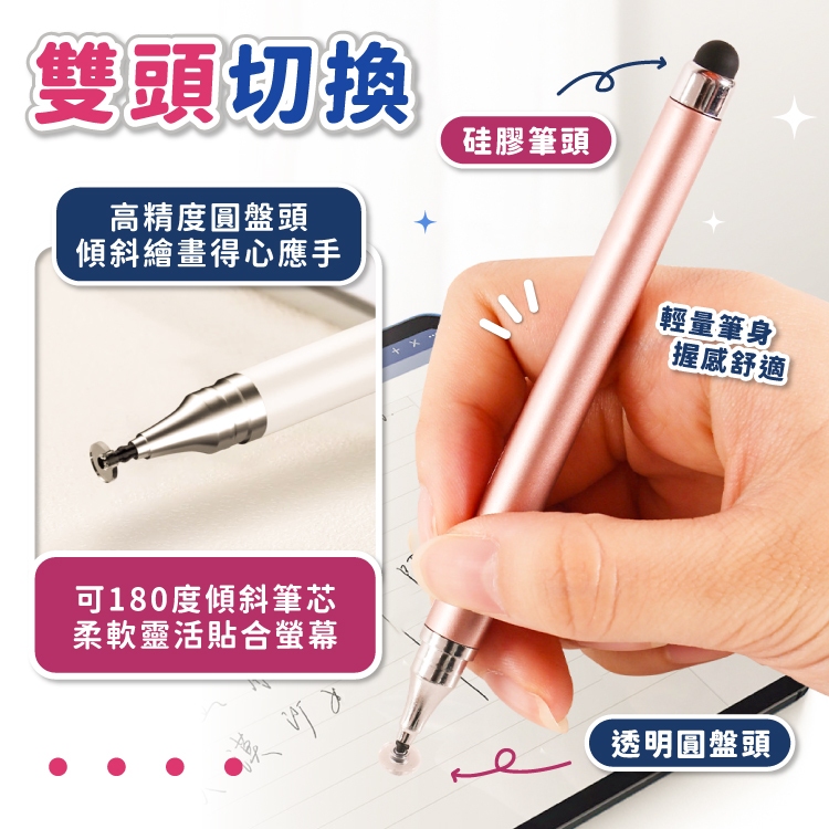 雙頭電容筆 觸控筆 二合一 手寫筆 繪圖筆 電繪 觸控 觸碰筆 手機 平板 電容式觸控筆 平板筆【小麥購物】【G179】白色|粉色|黑色Stylus 小麥購物