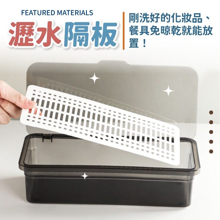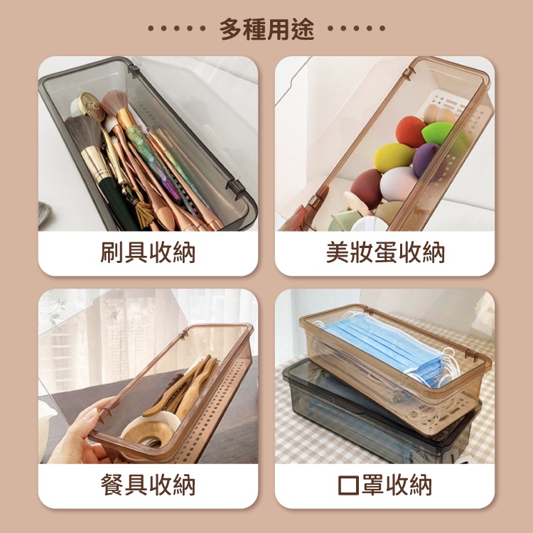 帶蓋透明收納盒 餐具透明收納盒 瀝水置物架 廚房收納 化妝品收納 雜物收納 口罩收納 防塵【小麥購物】【C364】茶色|灰色Desk Organizers 小麥購物