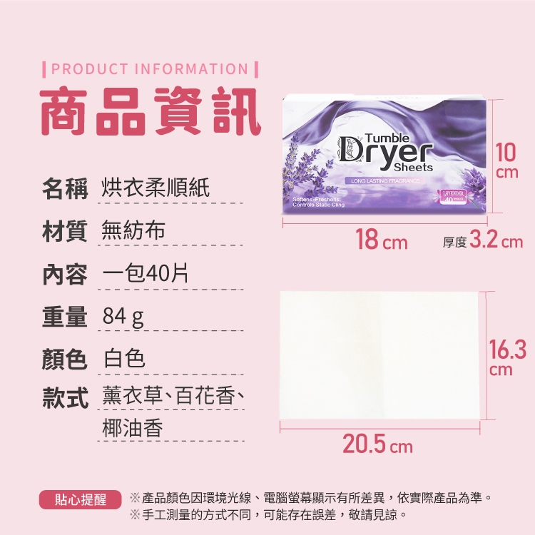 烘衣紙 烘衣柔順紙 香衣片 烘衣 除靜電紙 柔順紙 去靜電 柔順片 柔軟 洗衣紙 紙 抗靜電【小麥購物】【S042】清新椰香|40片|薰衣草|40片|百花香|40片Laundry Care 小麥購物