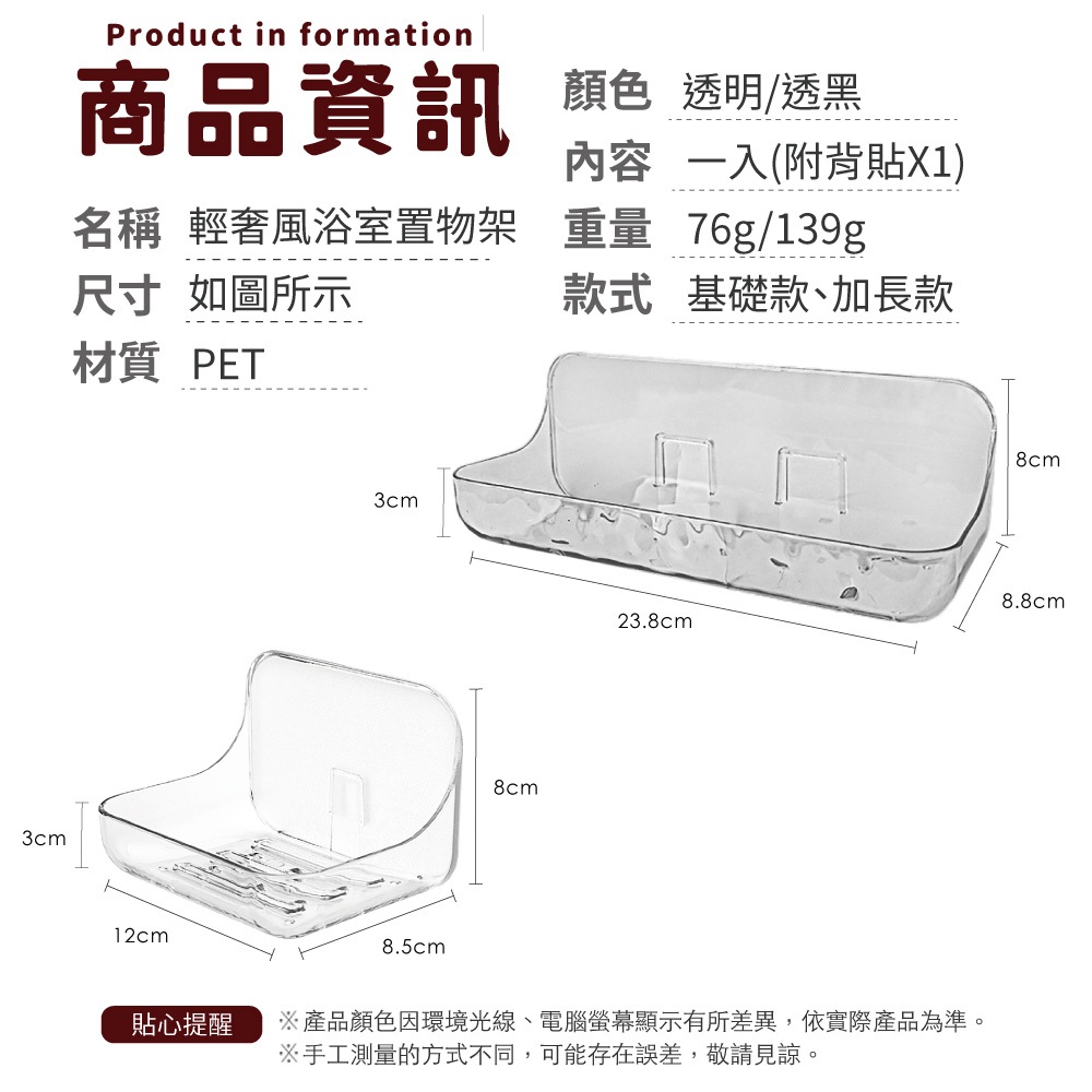 輕奢風浴室置物架 輕奢時尚 簡約有型 香皂盒 衛生間收納 浴室置物架 浴室 肥皂盒 免釘 黏貼 【小麥購物】【Y686】透白|透黑|加長款|透白|加長款|透黑Soap Dispensers, Holders & Boxes 小麥購物