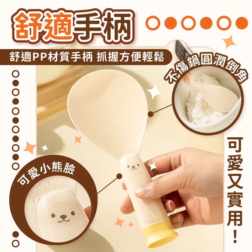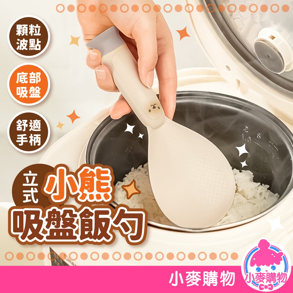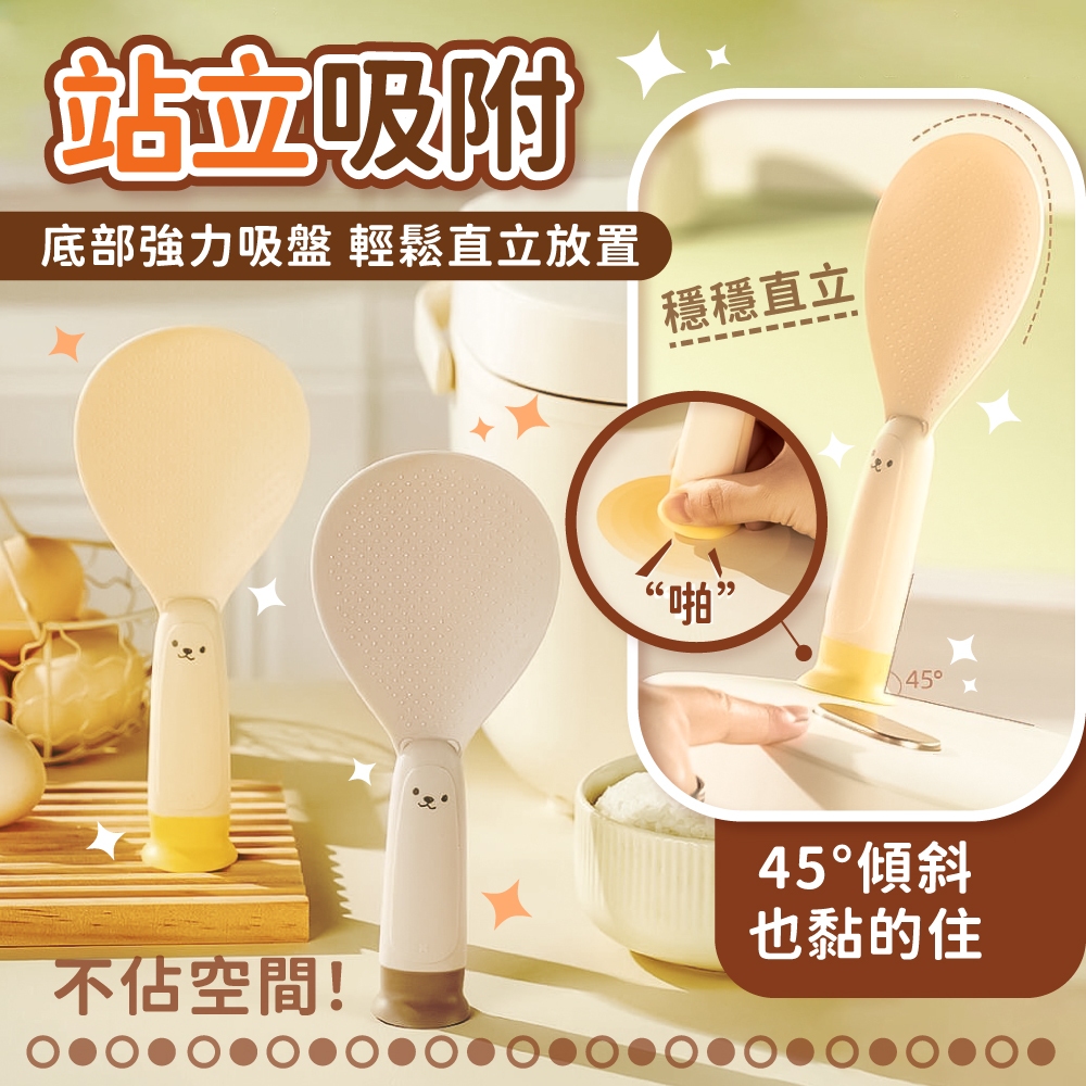 小熊吸盤飯勺 可立式 小熊飯勺 飯勺 可立式飯勺 盛飯勺 吸盤飯勺 站立飯勺 不粘飯勺 電飯煲勺【小麥購物】【G783】松灰Cutleries 小麥購物