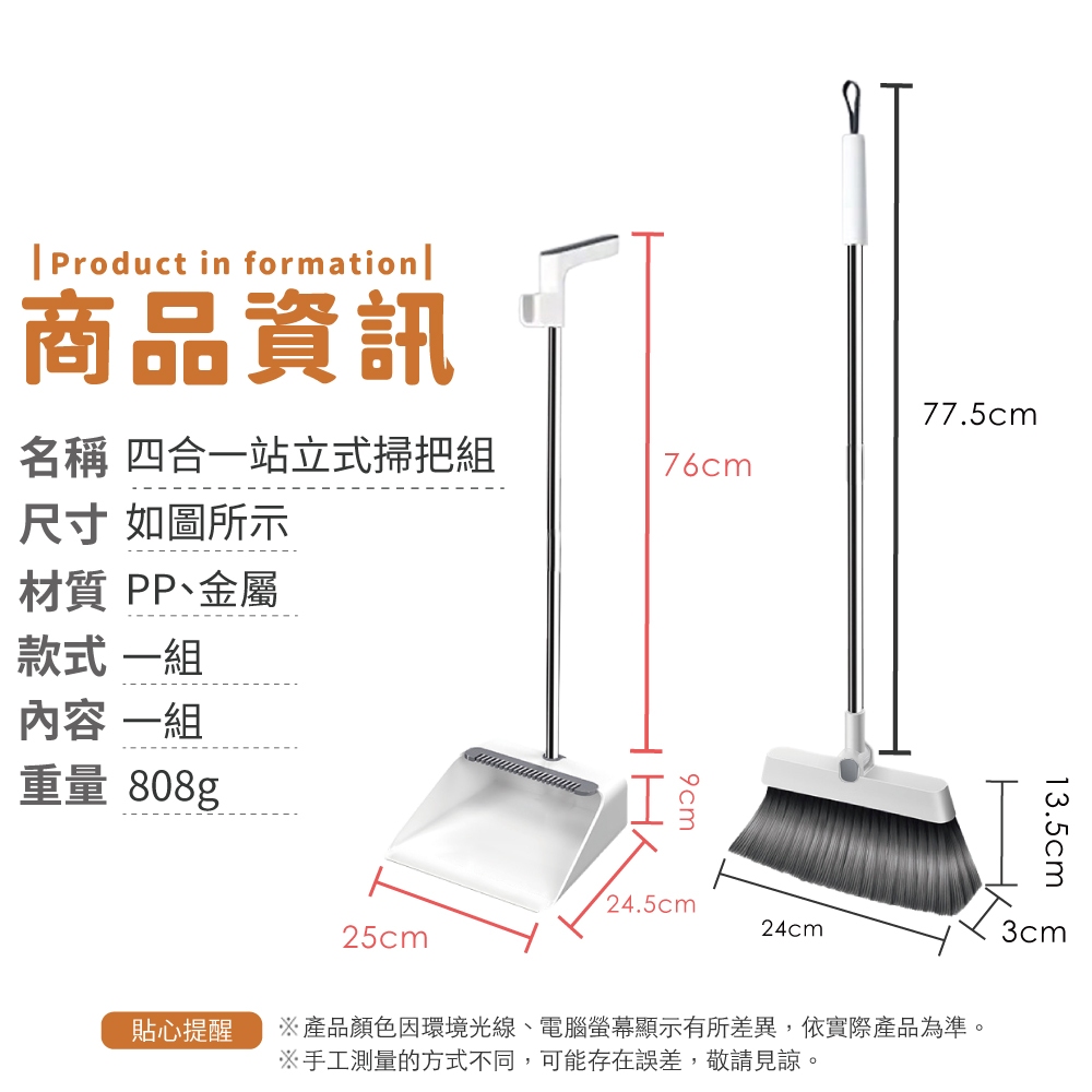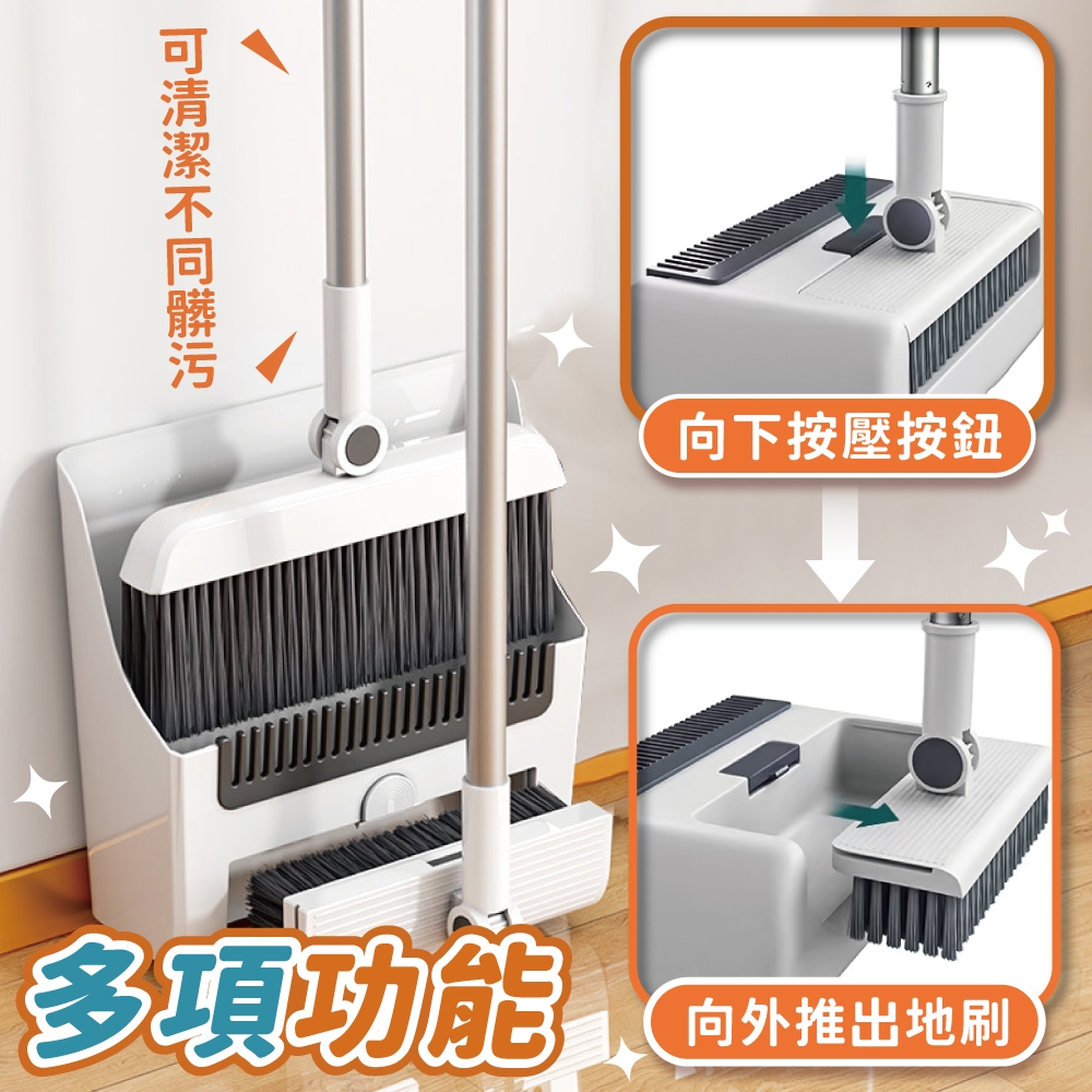 四合一站立式掃把組 站立式掃把組 折疊掃把組 畚斗 畚箕 伸縮掃把 摺疊掃把 掃地 【小麥購物】【C609】白色四合一Brooms 小麥購物
