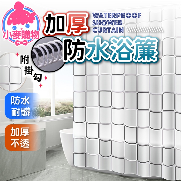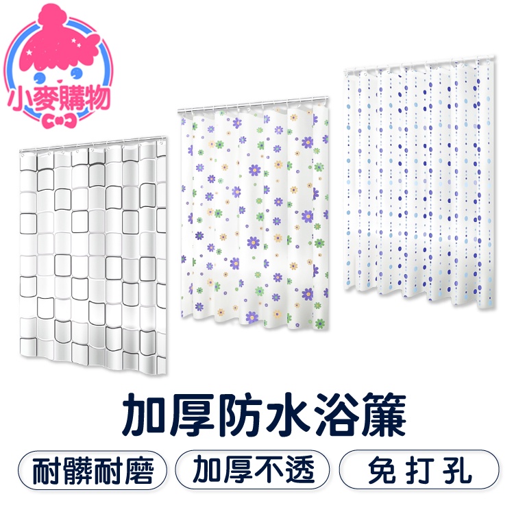 加厚防水浴簾 附扣環【小麥購物】【C187】隔間簾 乾濕分離 淋浴間 浴室 廁所 衛生間 防水浴簾大方格|小方格|日式白格|小紫花|小海星Shower Curtains 小麥購物