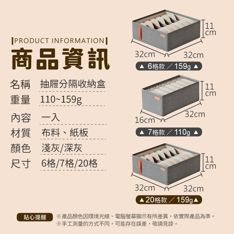 分格收納盒 衣物收納盒 收納盒 收納箱 收納 置物 衣櫥 衣櫃 整理盒 衣物收納 箱子 摺疊收納【小麥購物】【C189】淺灰|6格|淺灰|20格|深灰|7格|深灰|6格|深灰|20格|淺灰|7格Wardrobe Organizers 小麥購物