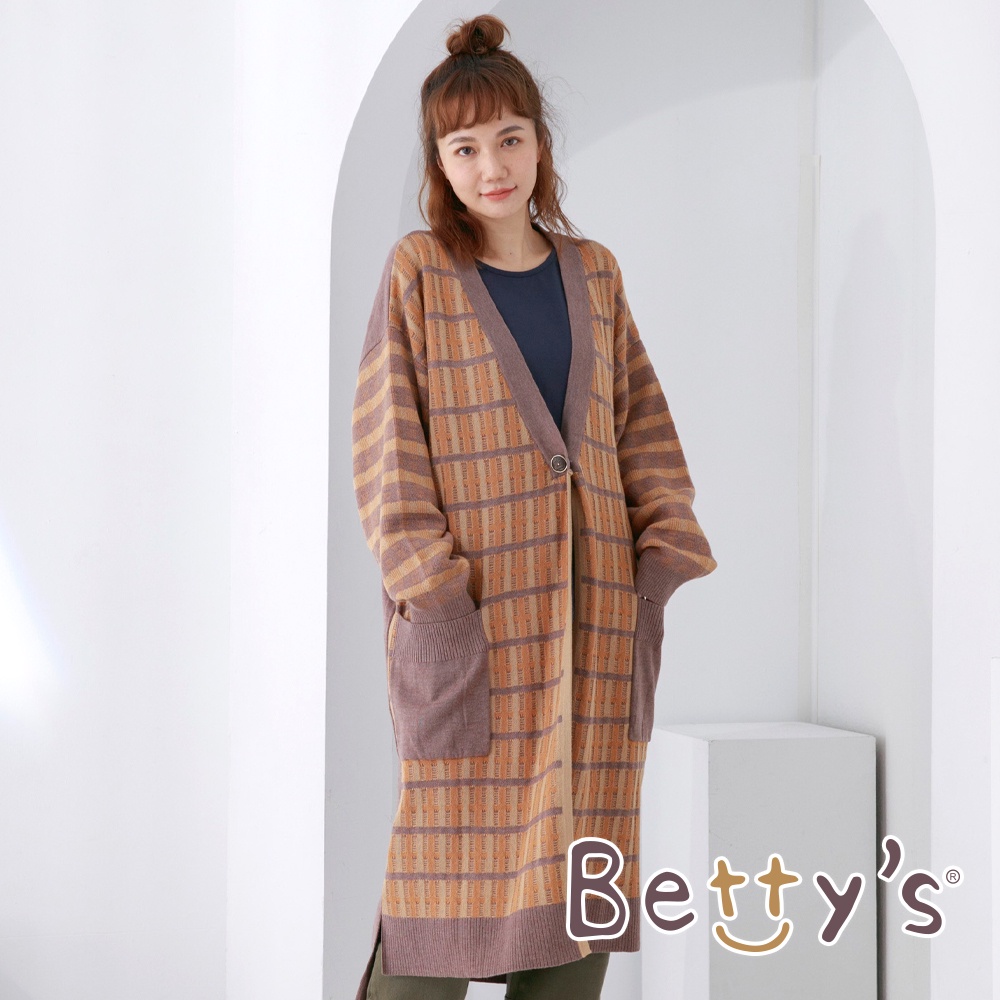 betty’s貝蒂思(05)長版挑紗拼接毛衣罩衫(駝色)駝色,Fbetty’s貝蒂思