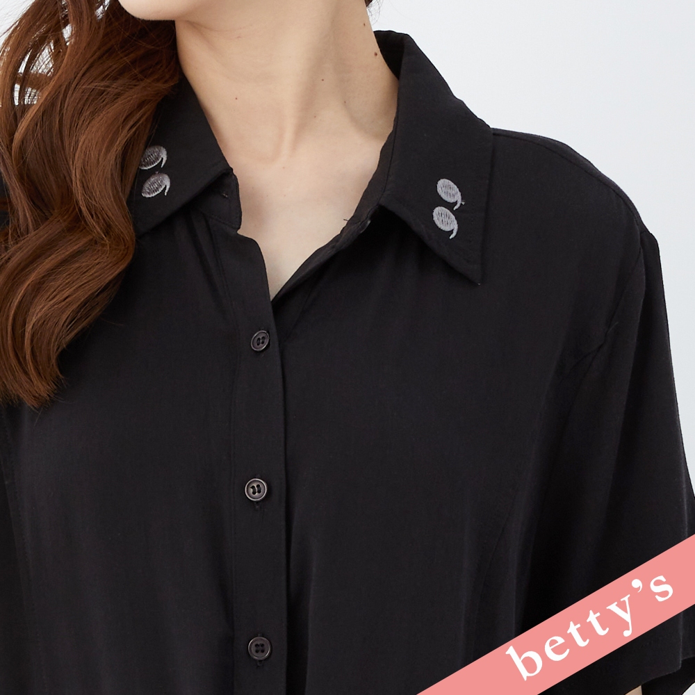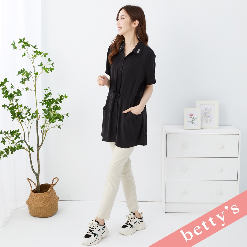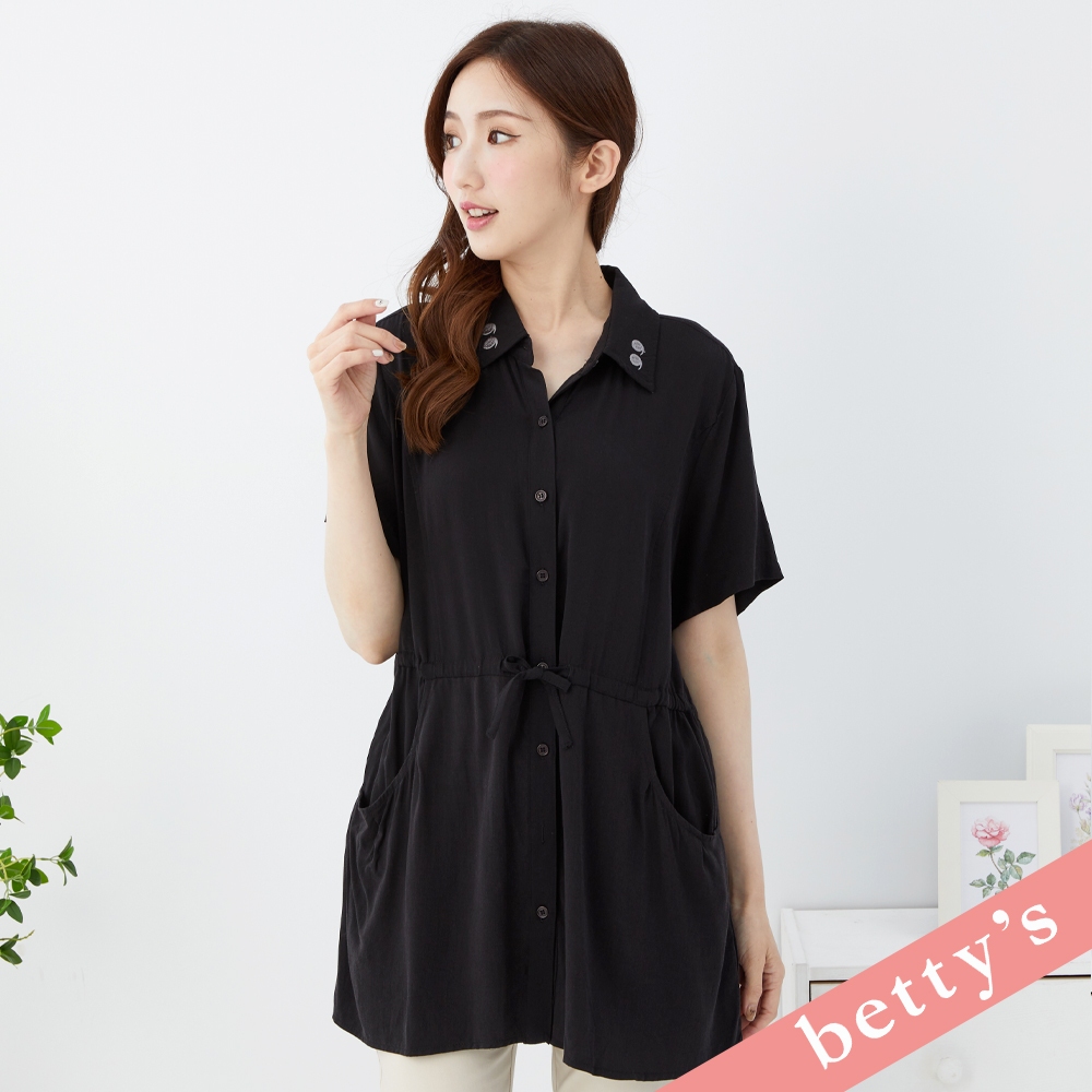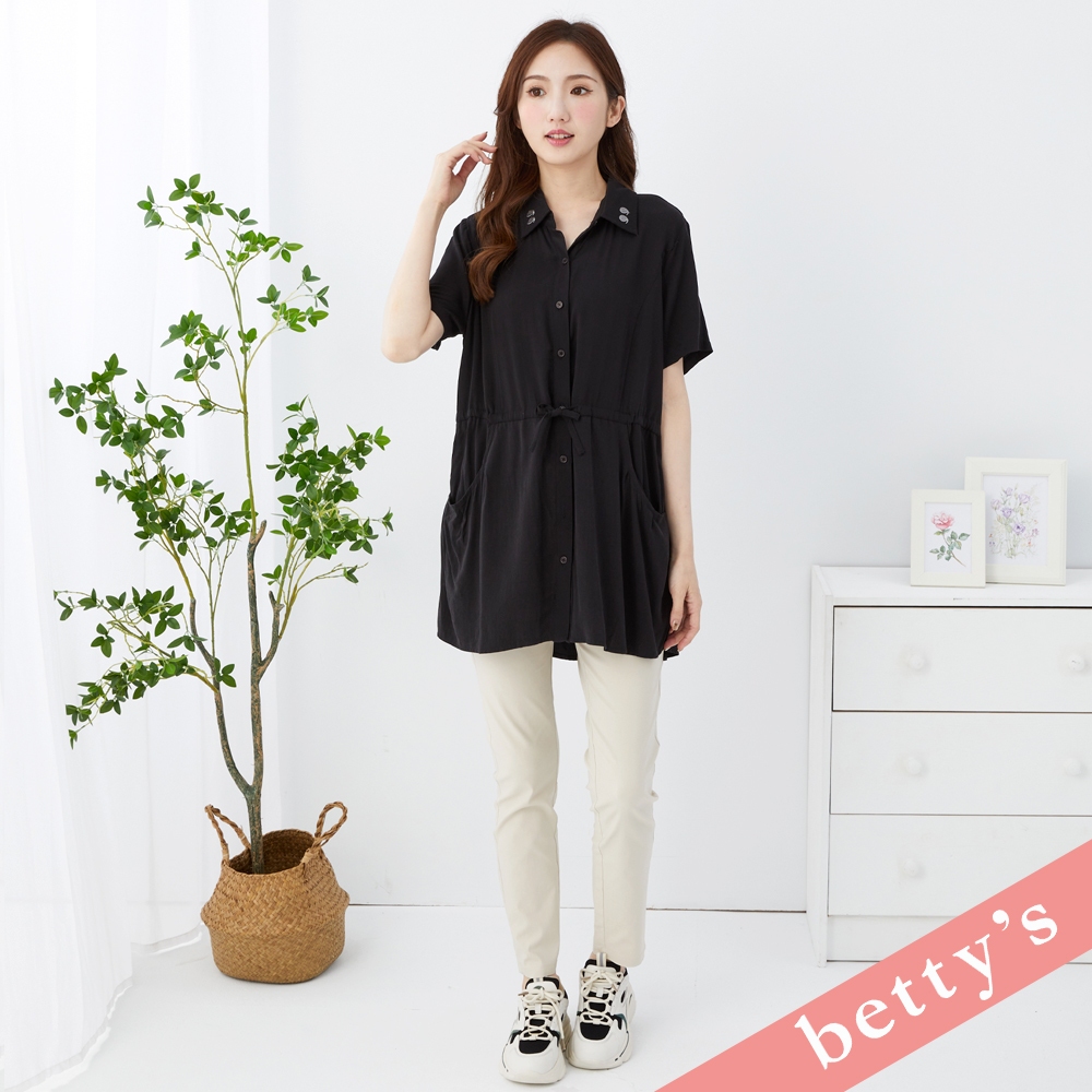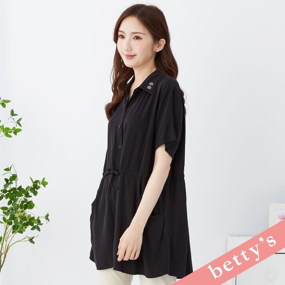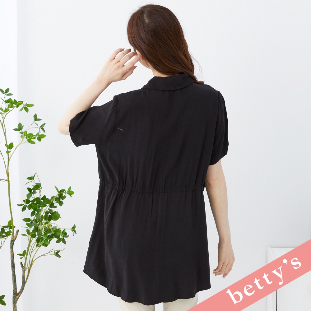 betty’s貝蒂思(31)領子繡花腰間抽繩長版襯衫(黑色)黑色,M|黑色,L|黑色,XLShirts & Blousesbetty’s貝蒂思