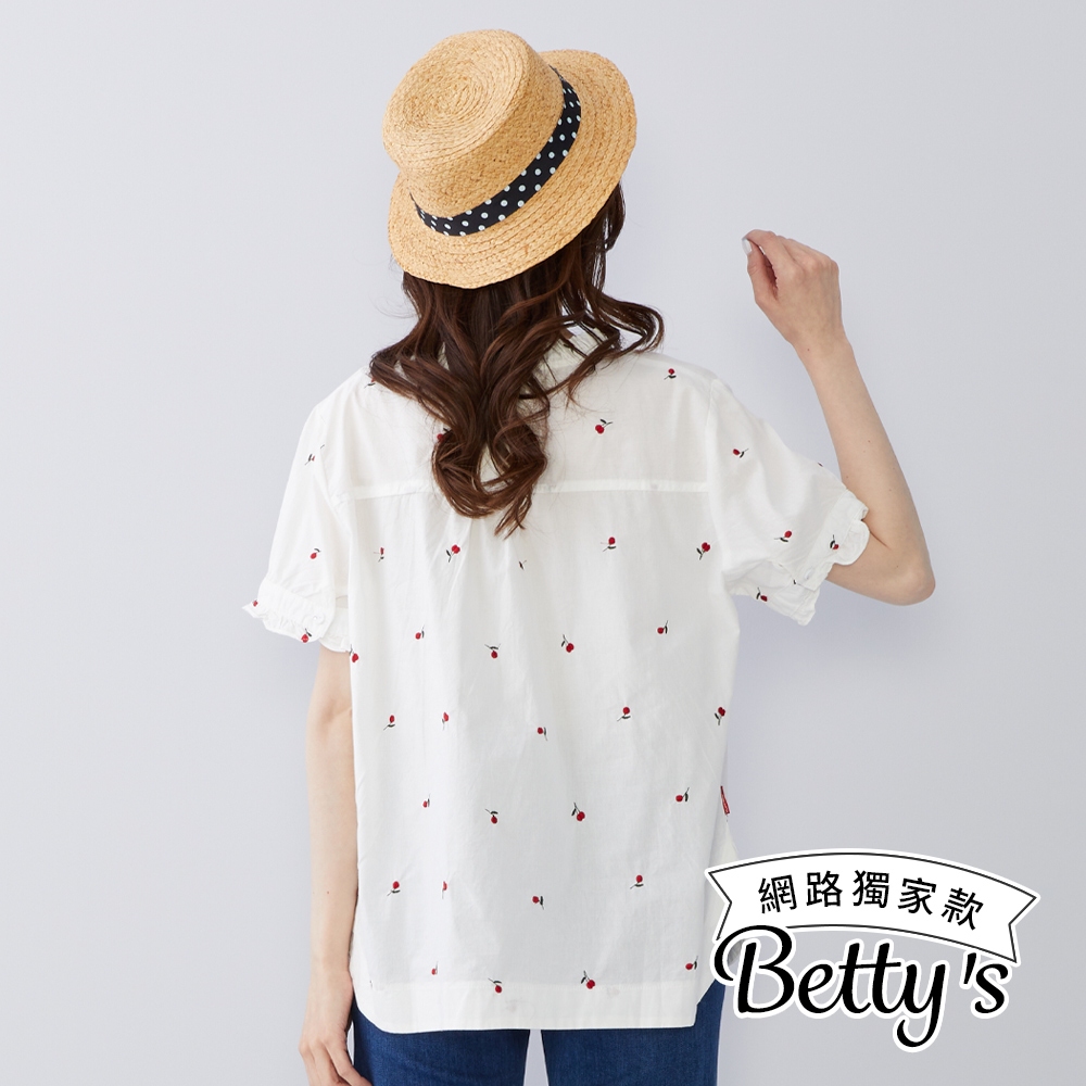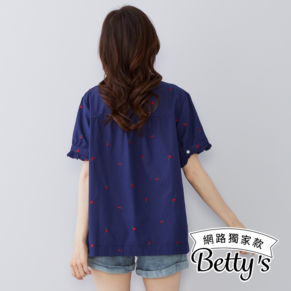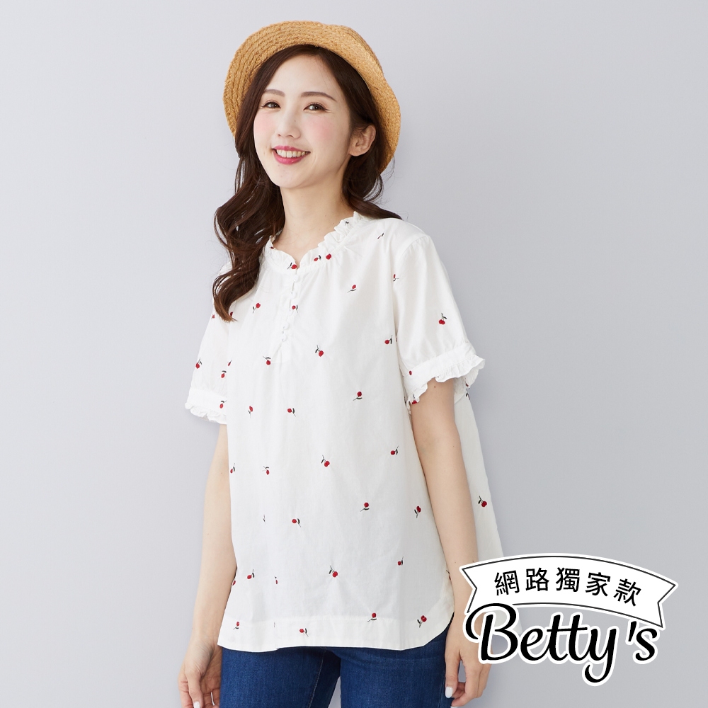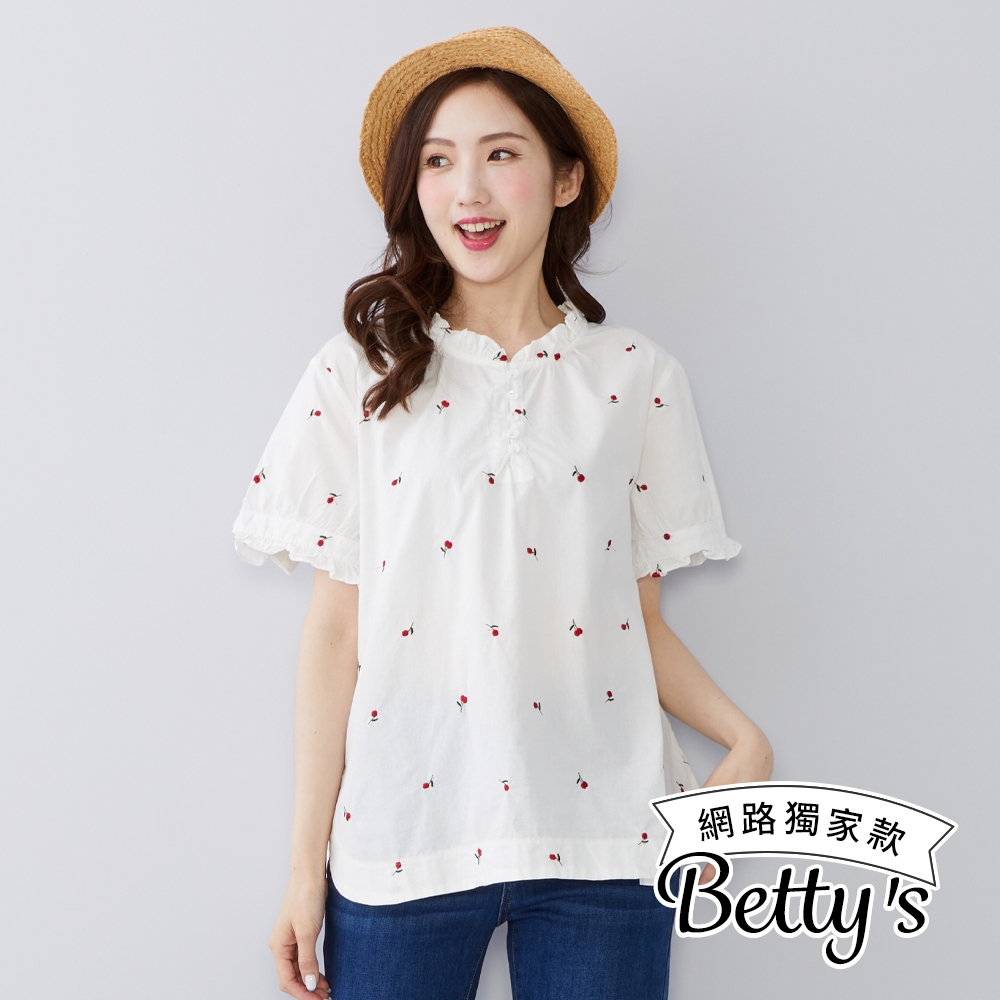 betty’s貝蒂思(50)水果印花荷葉邊立領上衣(共二色)深藍|白色T-shirtsbetty’s貝蒂思