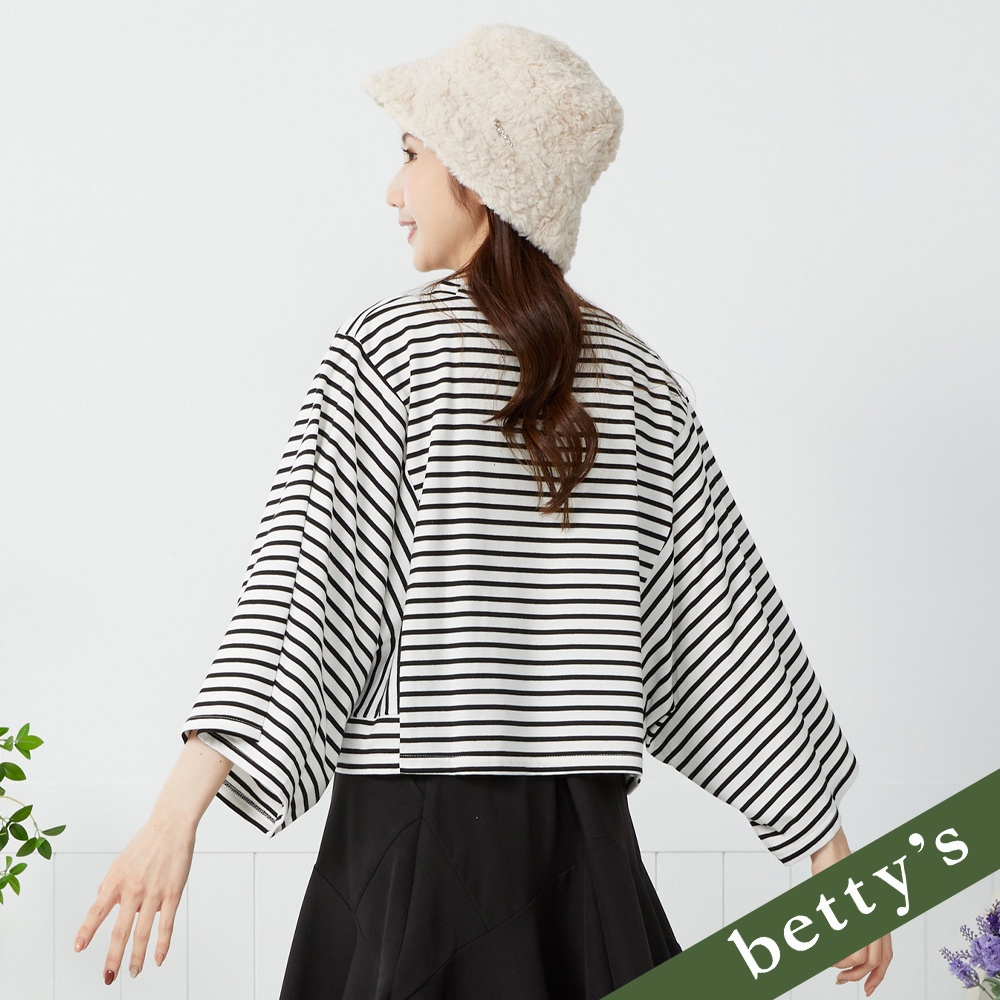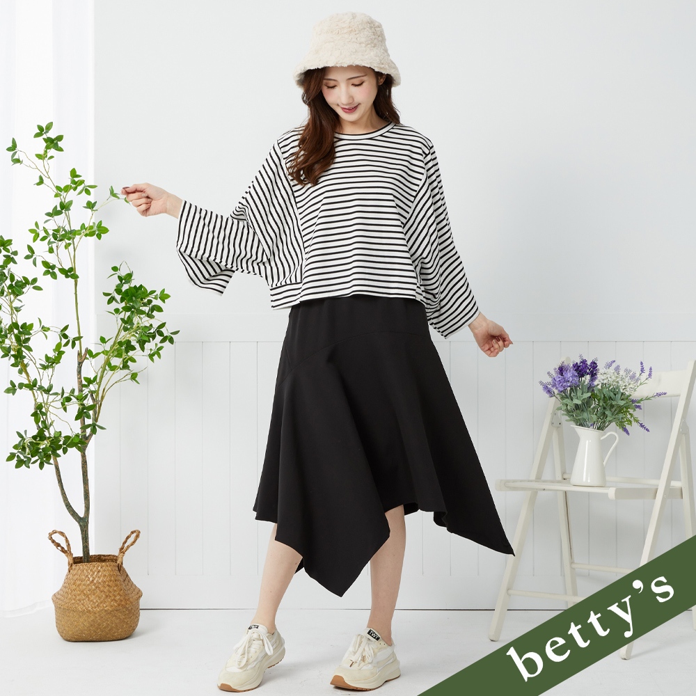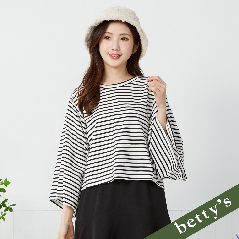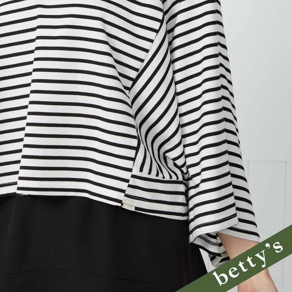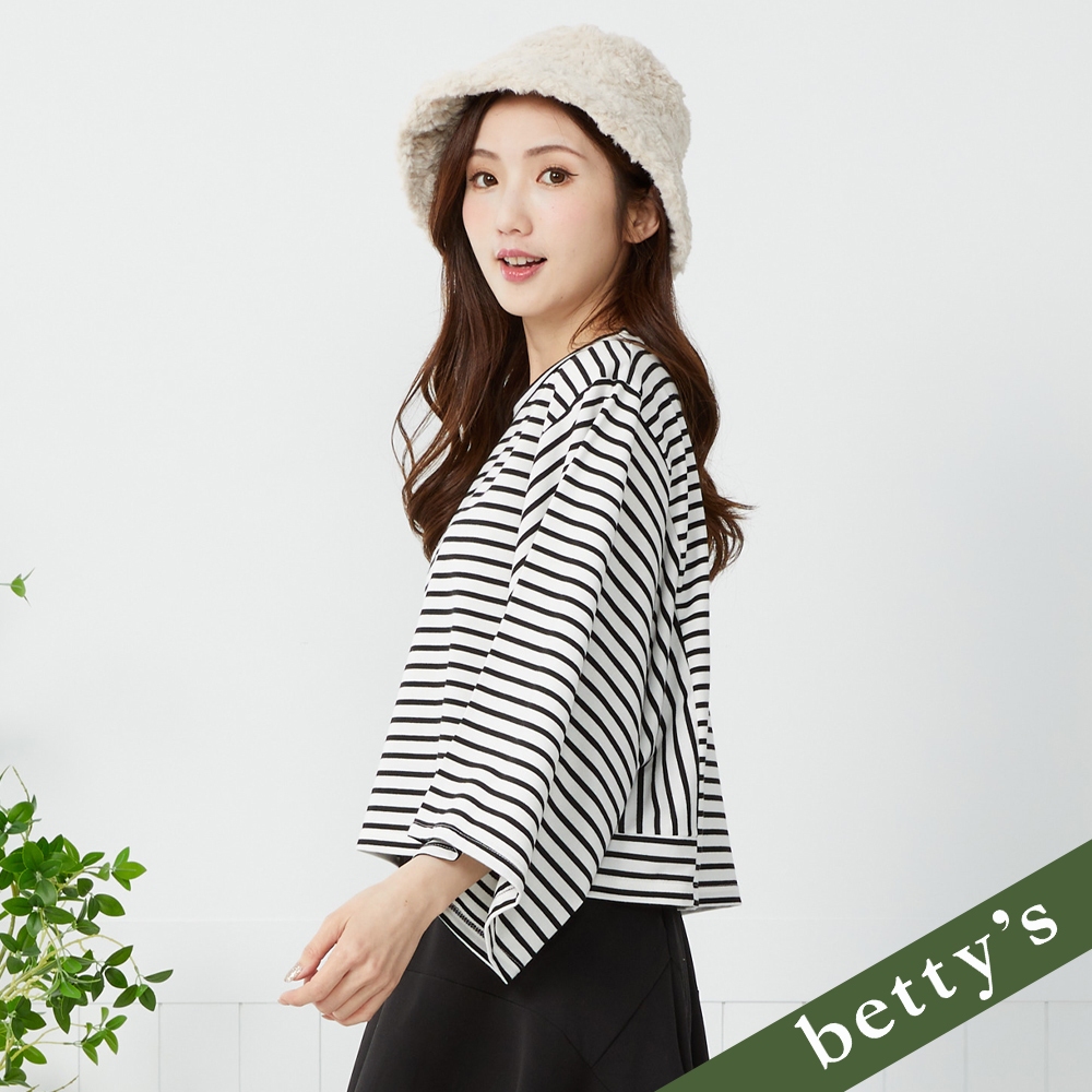 betty’s貝蒂思(41)條紋對半拼接V領上衣(黑色)黑色,M|黑色,L|黑色,XLT-shirtsbetty’s貝蒂思